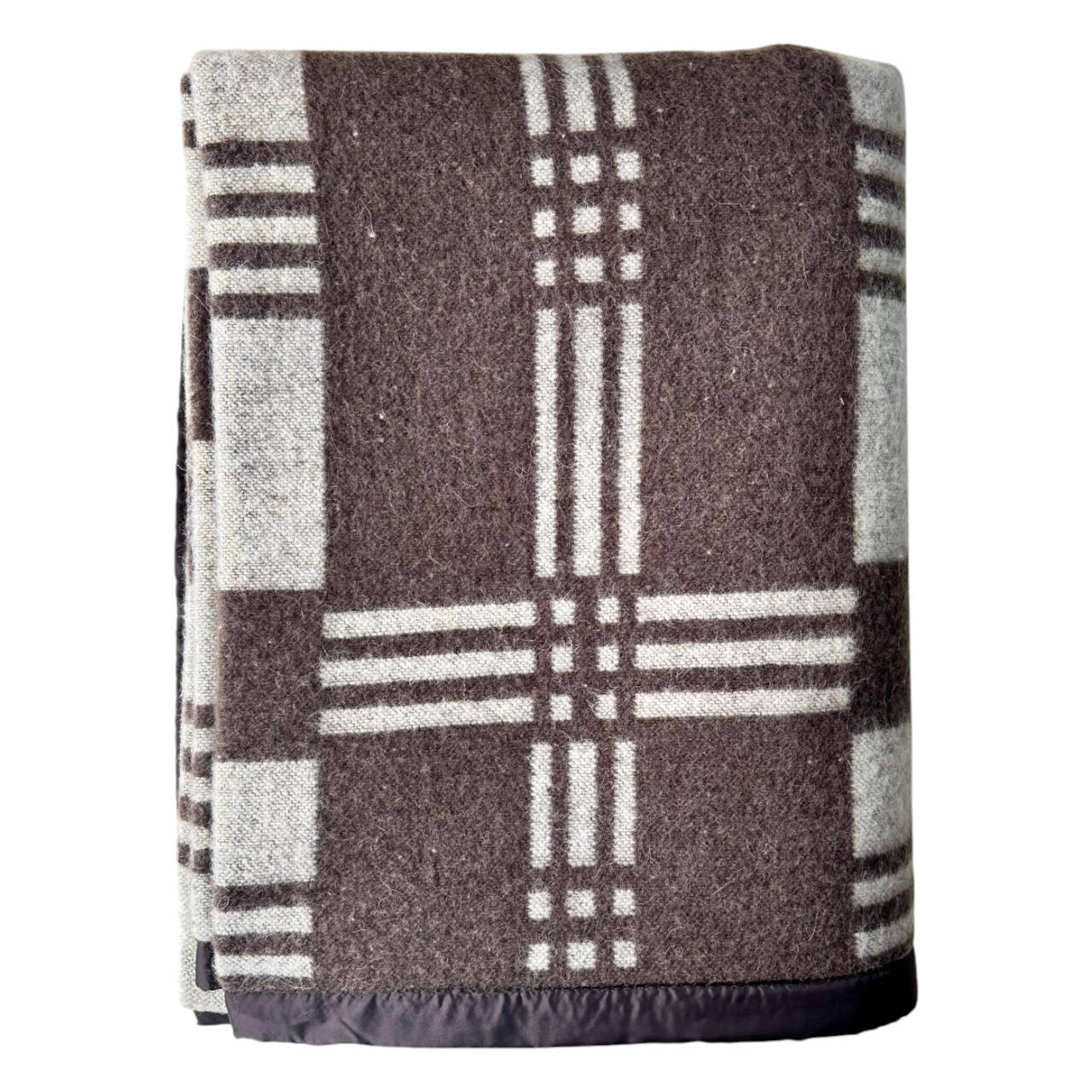 • Romanian wool blanket, traditional pattern, 150x200cm, brown/white
