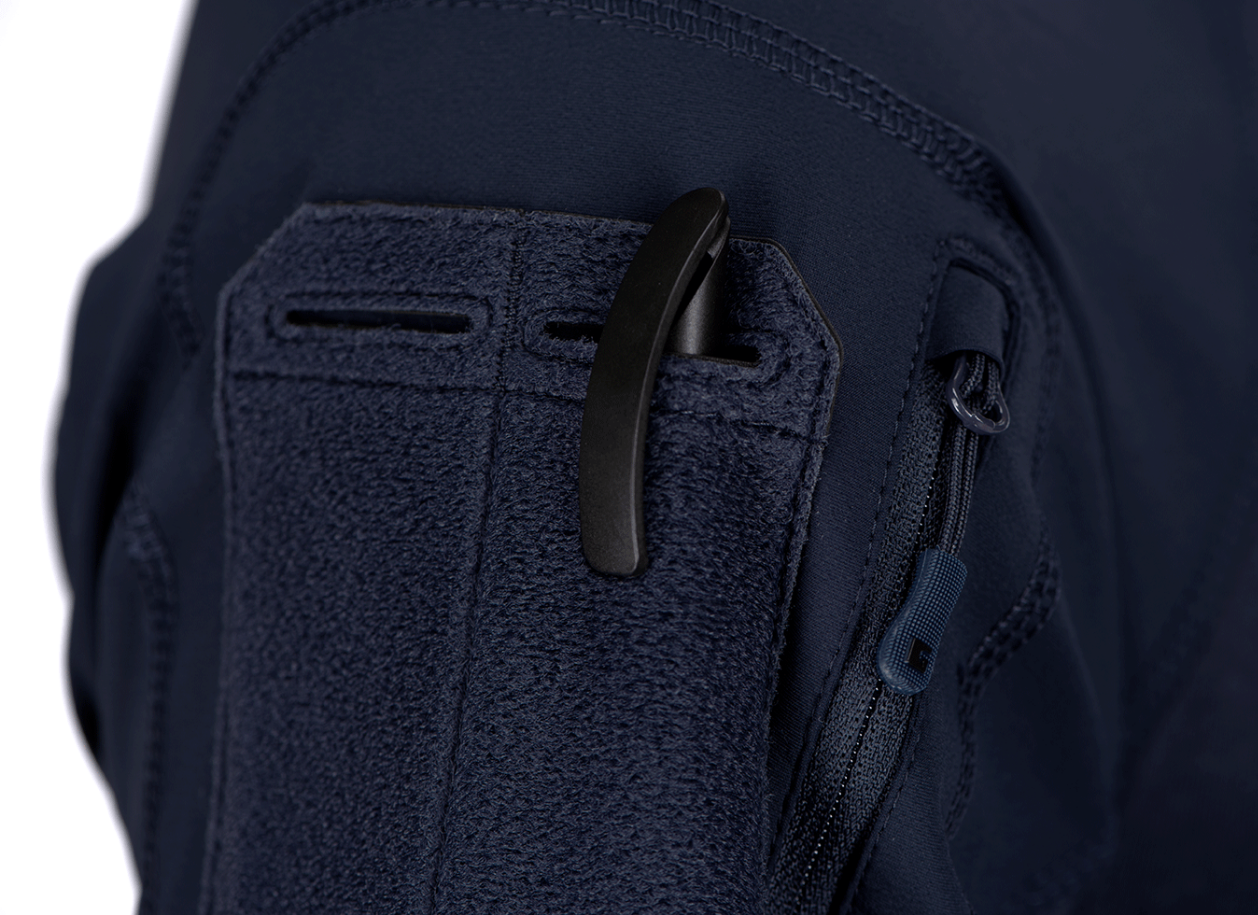 The technical design of the sleeves made of very resistant, stretchy, and water-repellent material ensures extremely high freedom of movement. The two upper arm pockets provide sufficient storage space, while the loop surfaces offer space for ID badges and two compartments each for writing materials.
