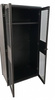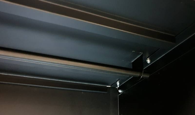 The TA-50 equipment cabinet includes 1.6mm thick steel shelves across the full width. The middle and bottom shelves are reinforced for an evenly distributed load capacity of over 70 kg. Holes are drilled in the sides of the posts to allow the shelves to be moved up or down by 100 mm. The ø20 mm round steel suspension bar under the shelf is perfect for hanging coats, uniforms, and even heavy field clothes. These equipment lockers are available in a matte black powder coat finish. The full size of the TA-50 locker is 2000 mm x 1000 mm x 600 mm.