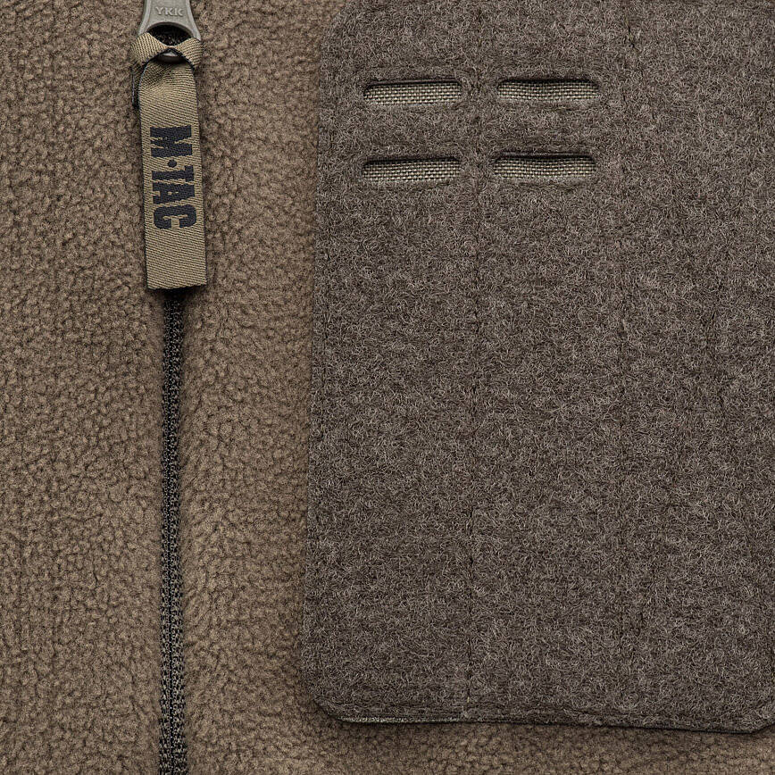 This second-generation fleece jacket from M-Tac is designed to be used instead of the third layer of ECWCS (Extended Cold Weather Clothing System). The product materials are fleece, 100% polyester (Oxford nylon), and laminated polyester mesh. Nylon inserts on the shoulders and sleeves. The jacket fastens with a double-sided plastic zipper. Equipped with five pockets. Velcro panels on the sleeves for attaching ID patches, and nylon windproof inserts on the cuffs. The lining, made of laminated polyester mesh, is soft and pleasant to the touch.