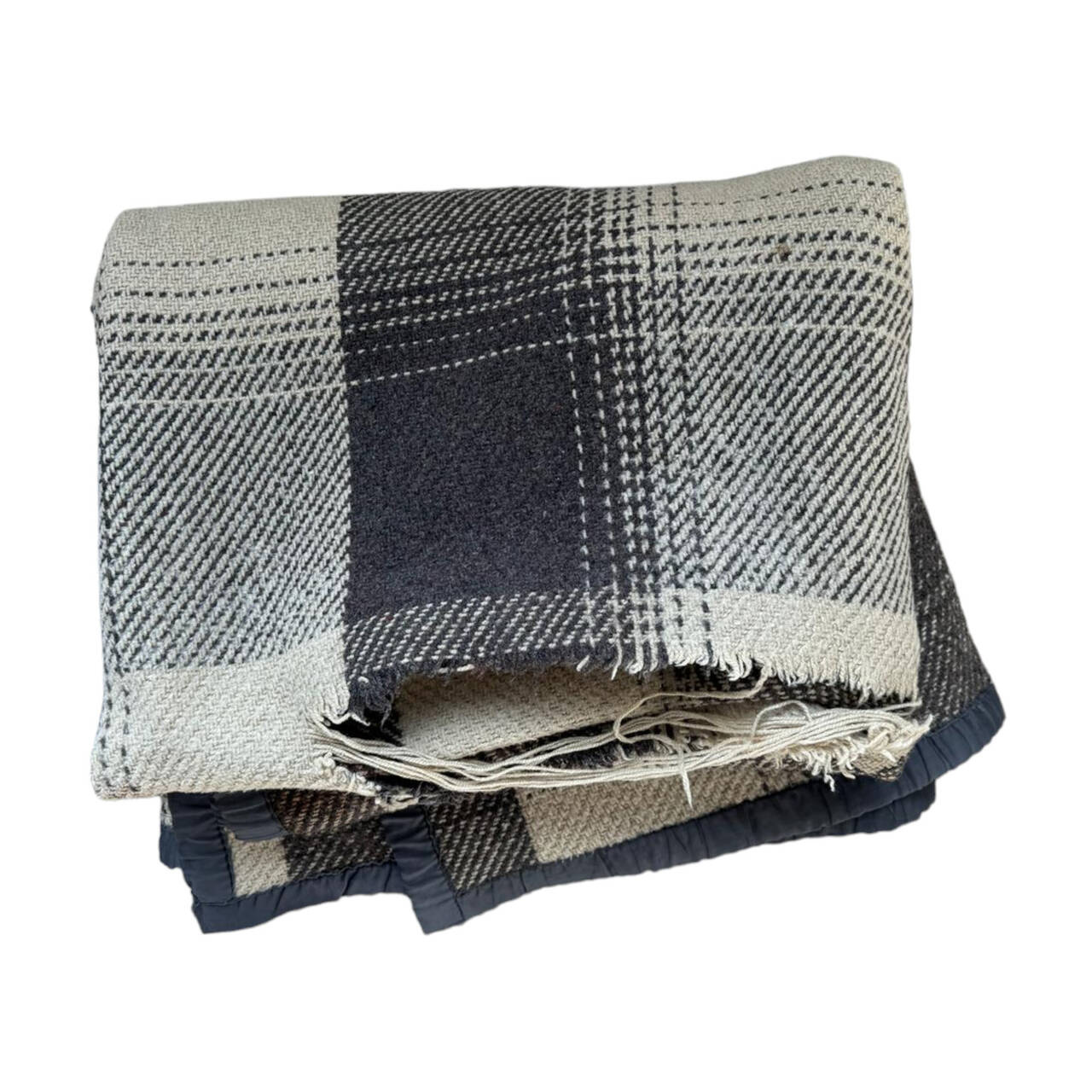 WOOL TARTAN BLANKET WHITE-BROWN PLAID - 140 x 200 CM - GENUINE MILITARY SURPLUS ROMANIAN ARMY - DEGRADATED