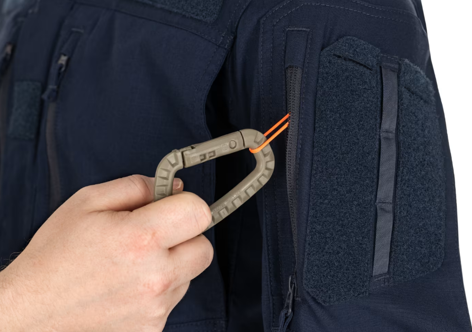 On both upper arms, a fold-over storage pocket with YKK reverse coil zip closure is provided. Inside the pocket, loops are provided for securely securing gear or storing individual first-aid items.