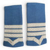 The military ranks are made in the form of a tubular sleeve with uneven ends, made on textile support of wool paspoal, embroidered with silver thread.