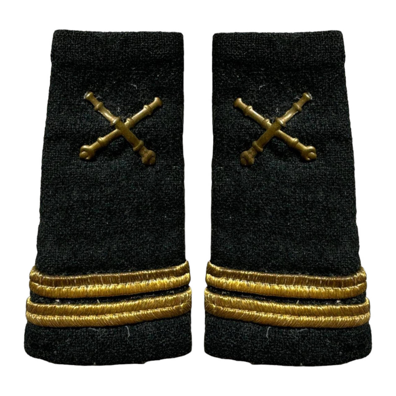 Military ranks are made in the form of a tubular sleeve with unequal ends, made on a textile backing of wool paspoal in the color of the weapon, on which the rank markings are embroidered with metallic thread.