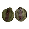 Pouch for AK-47 magazine, 75th, Romanian military issue, in This pouch is intended for one (1) 75-round drum magazine. Made of weather-resistant and durable material, this pouch has leather straps for mounting on a belt or backpack and internal straps for securing the magazine inside the pouch. Easily transport the drum magazine, keeping it clean and protected from the elements with this carrying pouch.