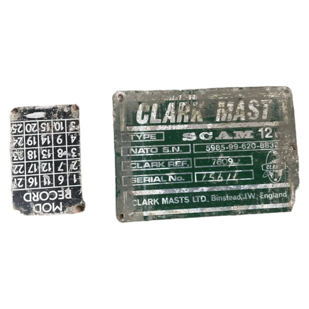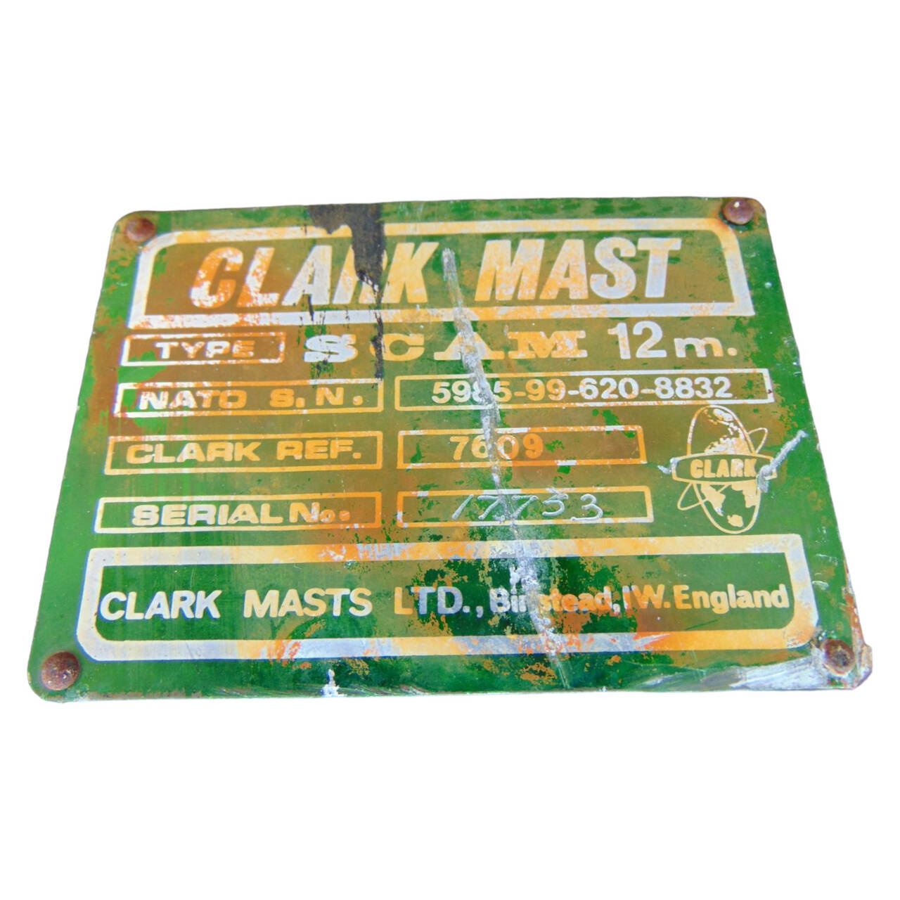 The Clark Scam 12 is a pneumatic radio antenna with a 12-meter mast. It has an enclosed length of 2.4 meters and an extended length of 12 meters. Its weight is about 140 kilograms. This antenna is only available for delivery via a carrier.