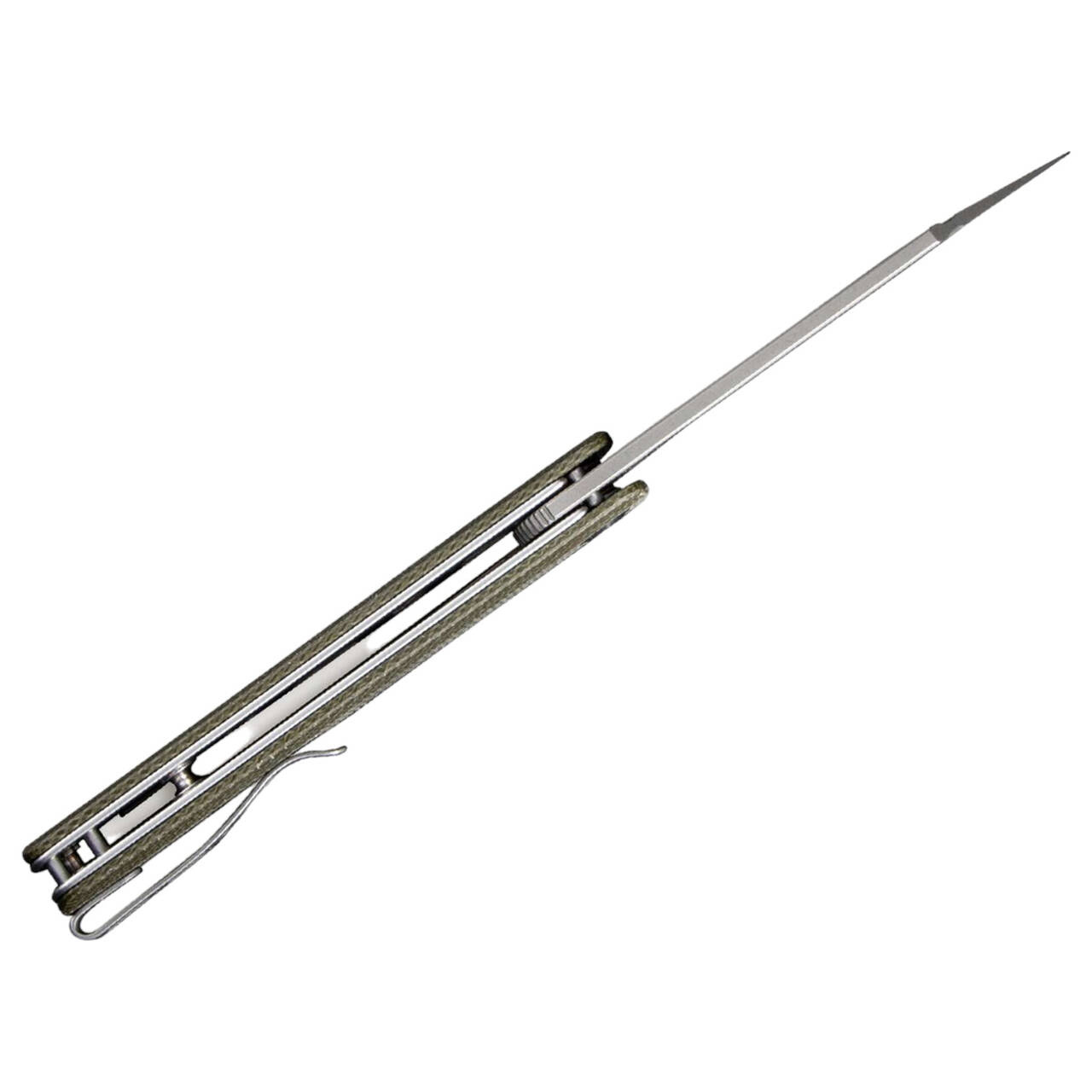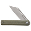 Sure to catch all eyes - the SENCUT Bronte catches the eye like a newly interpreted gentleman's knife. The massive inverted tanto blade made of 9Cr18MoV interrupts the slim lines, allowing for strong and precise cuts. The pocket knife opens with the discreet front flipper, while the liner lock ensures a reliable lock. The tart grey stonewash finish of the blade forms a harmonious contrast to the green Micarta handle scales, with a reversible tip-up clip.