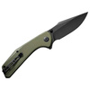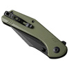 Actium = Reaction. With this simple formula, SENCUT describes the principle of interaction between the D2 sharp blade with a stonewash black finish and cutting ropes, boxes, or packaging. The pocket knife opens on bearings with a flipper or thumb pin and locks with a robust liner lock mechanism. The ergonomic green G10 handle provides firm support in all conditions. Features lanyard hole.