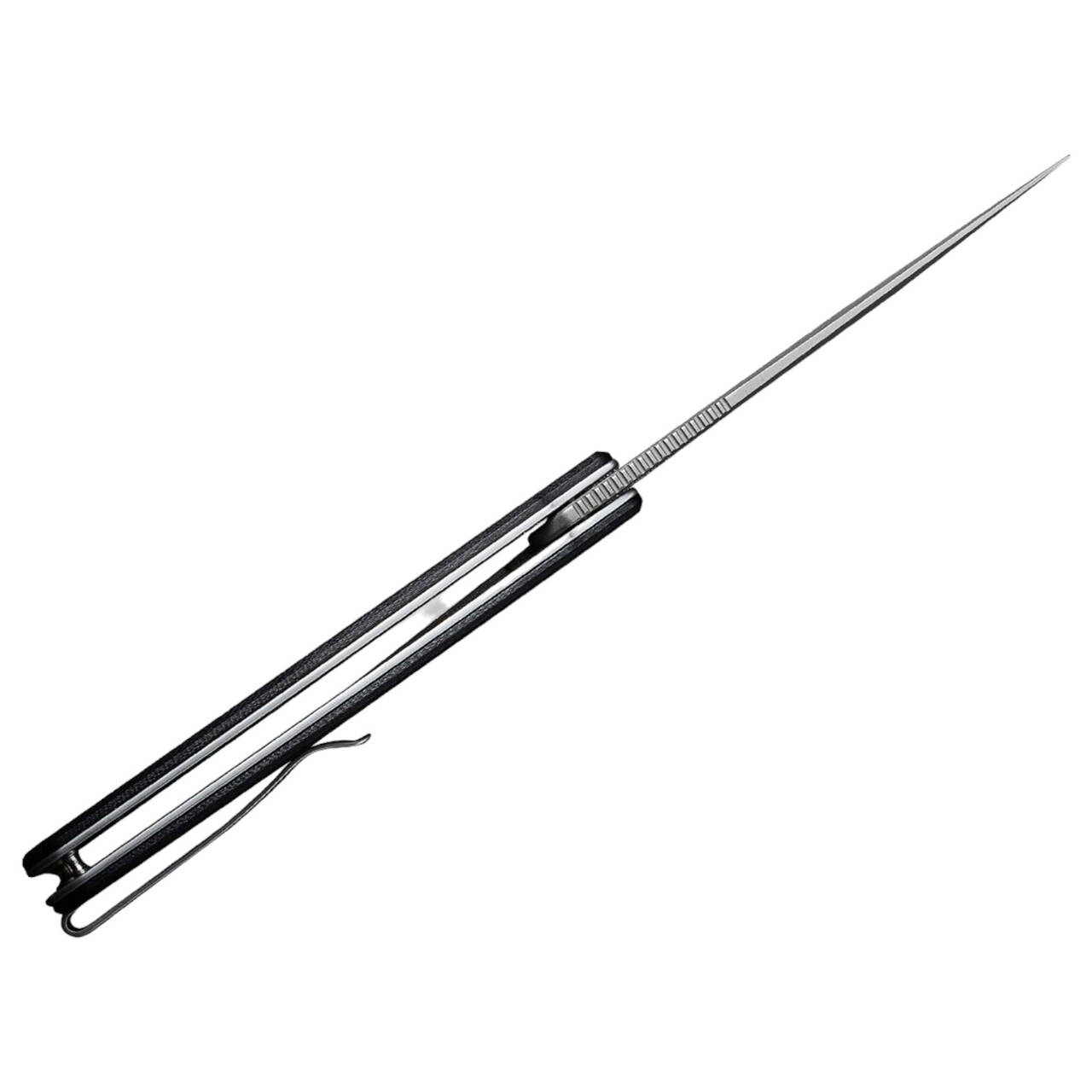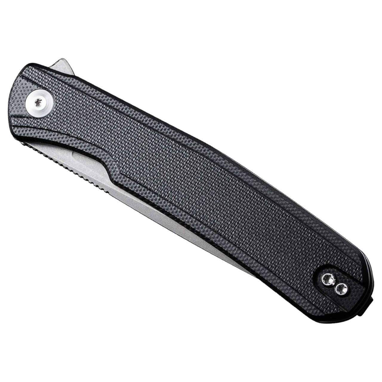 As a slim gentleman's knife, Scitus doesn't just impress visually. The straight blade on bearings, made of D2 steel with a stonewash grey finish, easily handles everyday cutting tasks. The black G10 scales handle and notches on the thumb rest provide optimal grip during use. The discreet flipper and liner lock highlight the sleek character for opening and unlocking the blade. Features a reversible clip for tip-up wear.