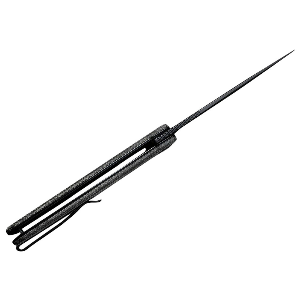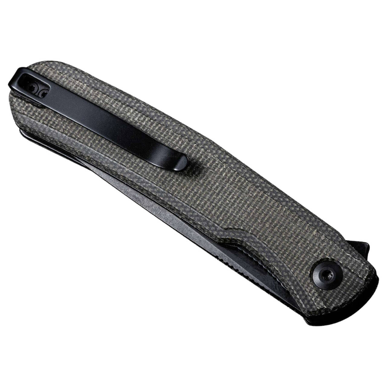 As a slim gentleman's knife, Scitus doesn't just impress visually. The straight blade on bearings, made of D2 steel with a stonewash grey finish, easily handles everyday cutting tasks. The black G10 scales handle and notches on the thumb rest provide optimal grip during use. Dark green Micarta handle scales and jimpings on the thumb rest provide optimum grip during use. The elegant character is underlined by the discreet flipper and the liner lock for opening and unlocking the blade. With a reversible tip-up clip.