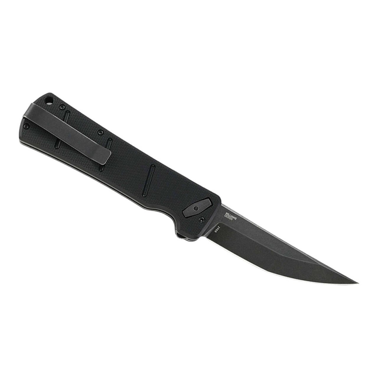 This all-black design by James Williams combines Japanese genes with tactical appeal. The assisted opener opens the D2 blade via flipper and is held by the sturdy Deadbolt Lock. The G10 handle fits securely in the hand and has a lanyard loop.