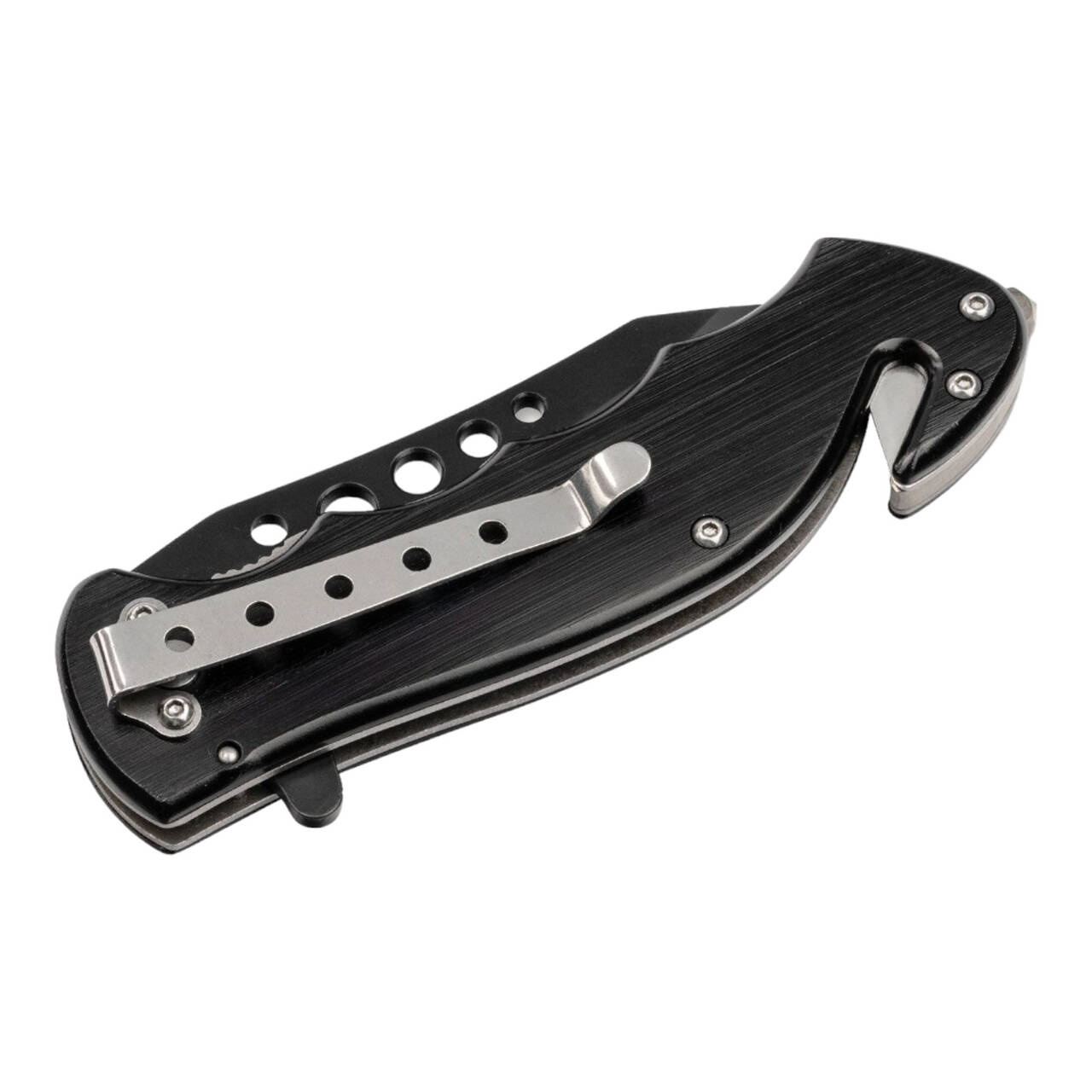 The Magnum Special Forces is a functional rescue knife dedicated to the world-renowned elite units of the American armed forces. The lightweight handle made of black-coated aluminium bears an emblem of the Coats of Arms of the Special Forces. The stainless 440A blade opens with a spring-assisted flipper and is reliably locked by a sturdy linerlock. The bored holes give the blade its own touch and also reduce the weight. At the end of the handle are a glass breaker and a belt cutter, which predestine the knife for any emergency kit. Supplied with a practical deep-carry clip (tip-down).