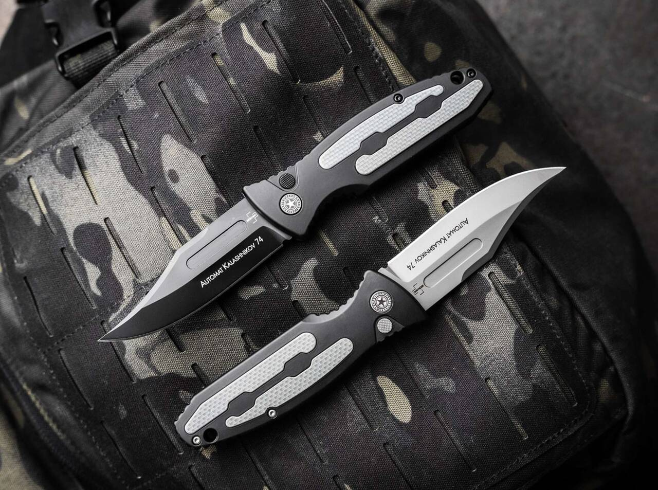 The specification for the development of the Boker Kalashnikov was to integrate design elements of the AK-47 assault rifle. The most striking recognition feature is the distinctive blade made of D2, which stylistically corresponds to the bayonet blade of the AK-47. Otherwise identical in construction to the BP Kalashnikov 47 Auto Black model (01KALS136).