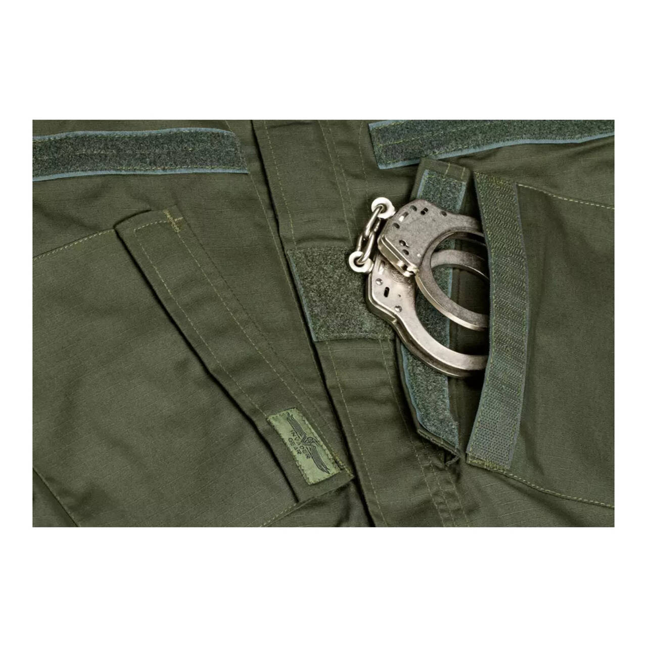 • Sleeve pockets: 2 upper pockets on sleeves with Velcro flaps, 3-slot pen pocket on left sleeve
