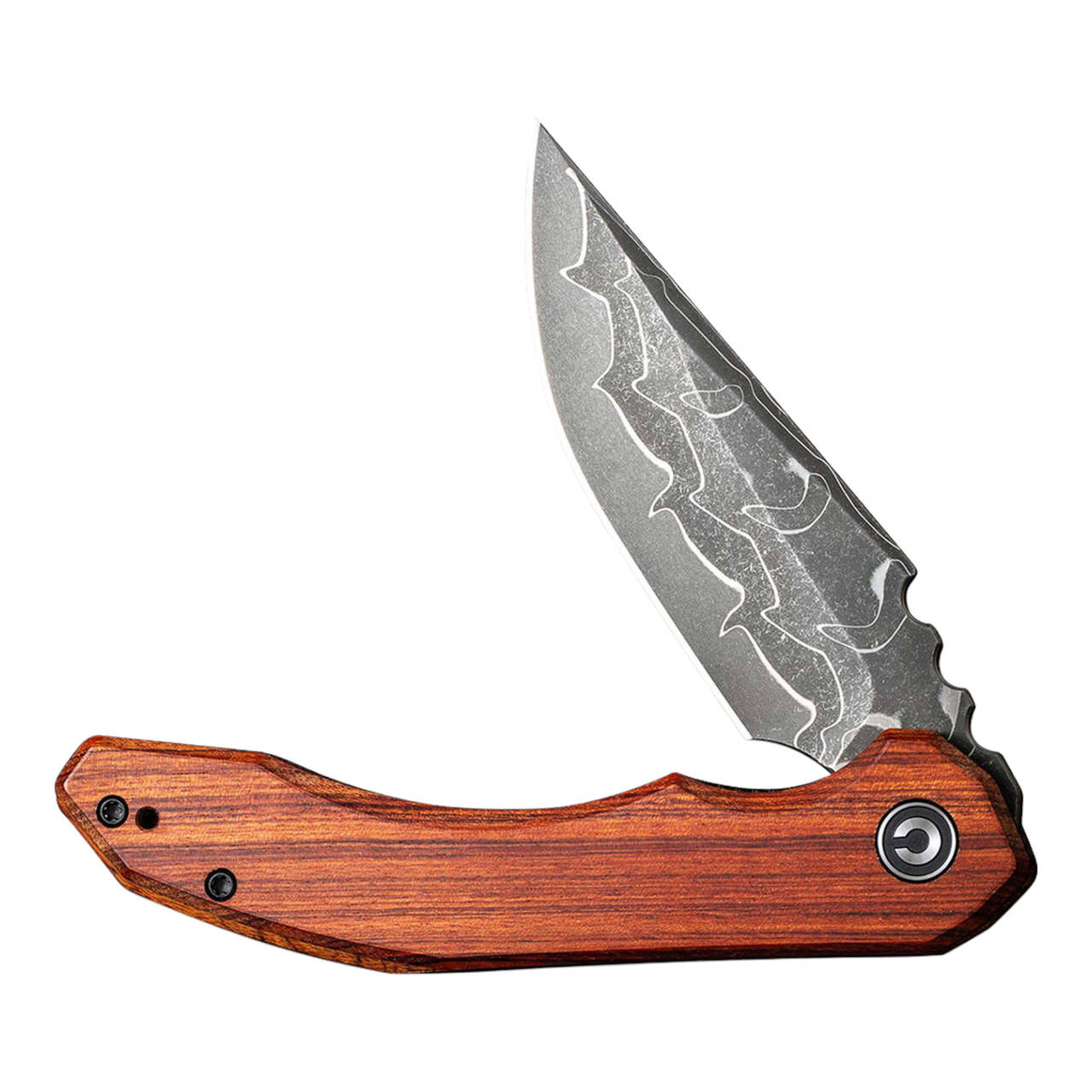 With the CIVIVI Bluetick, Bryan Montalvo has launched an uncompromising EDC knife that does not shy away from any cutting task. The striking drop-point blade made from fine Damascus is ball-bearing mounted and opens with a flipper. Opulent jimpings are attached to the thumb rest, promising maximum control and safety at work. The ergonomic handle made from exquisite Bubinga wood, which houses the discreet liner lock for locking the blade and a reversible tip-up clip, is a real hand flatterer.