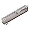 Jimpings in the area of the thumb rest and on the backspacer further increase work safety. The straight-lined design features front handle scales made of three-dimensionally milled Micarta, which is finished in a light brown. The right-hand grip and the deep-carry clip (tip-up/r), which is also three-dimensionally milled from solid material, have a satin finish. Supplied with a lanyard hole and high-quality nylon pouch for storage.