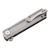As a combination of a modern EDC and a high-quality gentleman's knife, the Boker Plus Cataclyst also convinces in the Damascus variant with 110 layers all along the line. The sturdy blade opens on ball bearings via a flipper and has a flat grind and a groove on both sides. It is reliably locked in place by a reinforced framelock. Jimpings in the thumb rest area and on the backspacer further increase safety at work. The straight-lined construction is equipped with a front handle made of three-dimensionally milled Micarta, which is in a muted green. The framelock and the clip (tip-up/r), which is also three-dimensionally milled from solid material, have a satin finish. Supplied with a lanyard hole and a high-quality nylon pouch for storage.