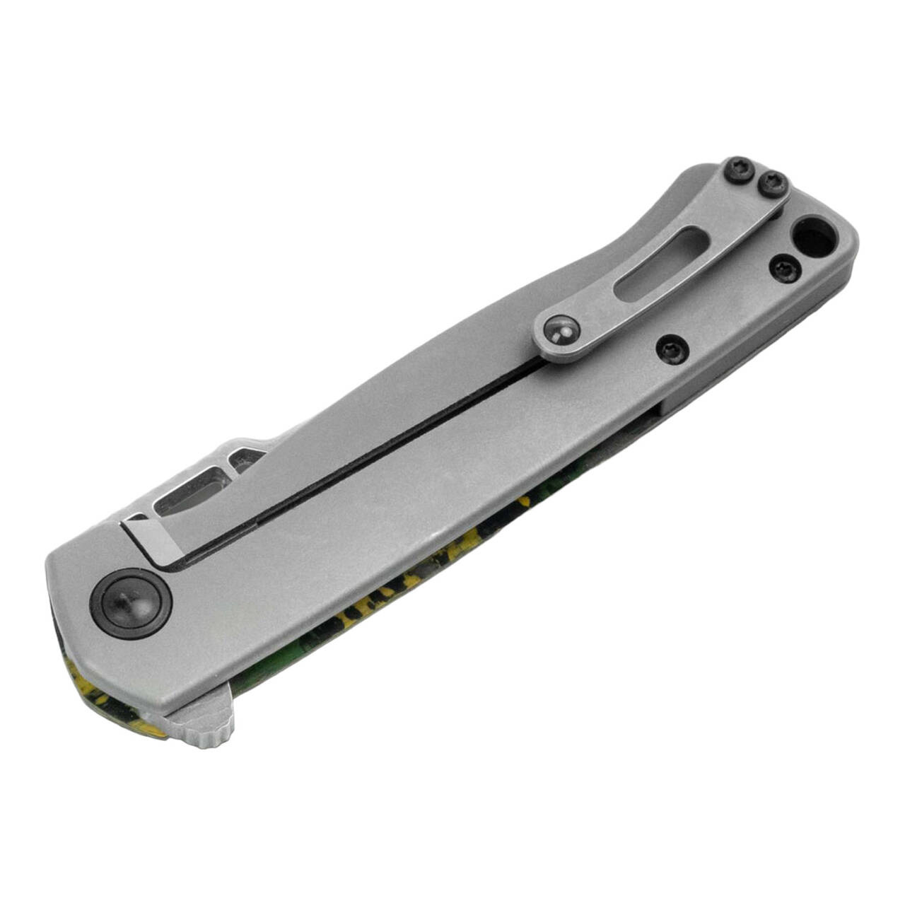 The Boker Plus ME 109 Damascus picks up numerous design elements of the legendary Messerschmitt. The opening at the back of the blade base has the unmistakable shape of the pilot's cockpit and is visible when the knife is closed and open. The folds in the sheet metal of the engine cowling as recesses for the barrel soul axles of the two MG 17s form the template for the schor at the tip of the blade. The flipper indicates a wheel of the retractable landing gear. For the front carbon fibre shell, the material Toxic Storm from the manufacturer Fatcarbon Materials was chosen in the colours green, black and yellow. The colour scheme is based on the characteristic camouflage paint of the Bf 109 with greenish-grey undercoat and yellow front fuselage. The opposite side has a titanium framelock with an elaborately integrated carbide contact surface. A beautifully designed and elaborately integrated clip allows the Boker Plus ME 109 to be worn tip-up on the right. Supplied with a high-quality case for storage and a certificate of authenticity.