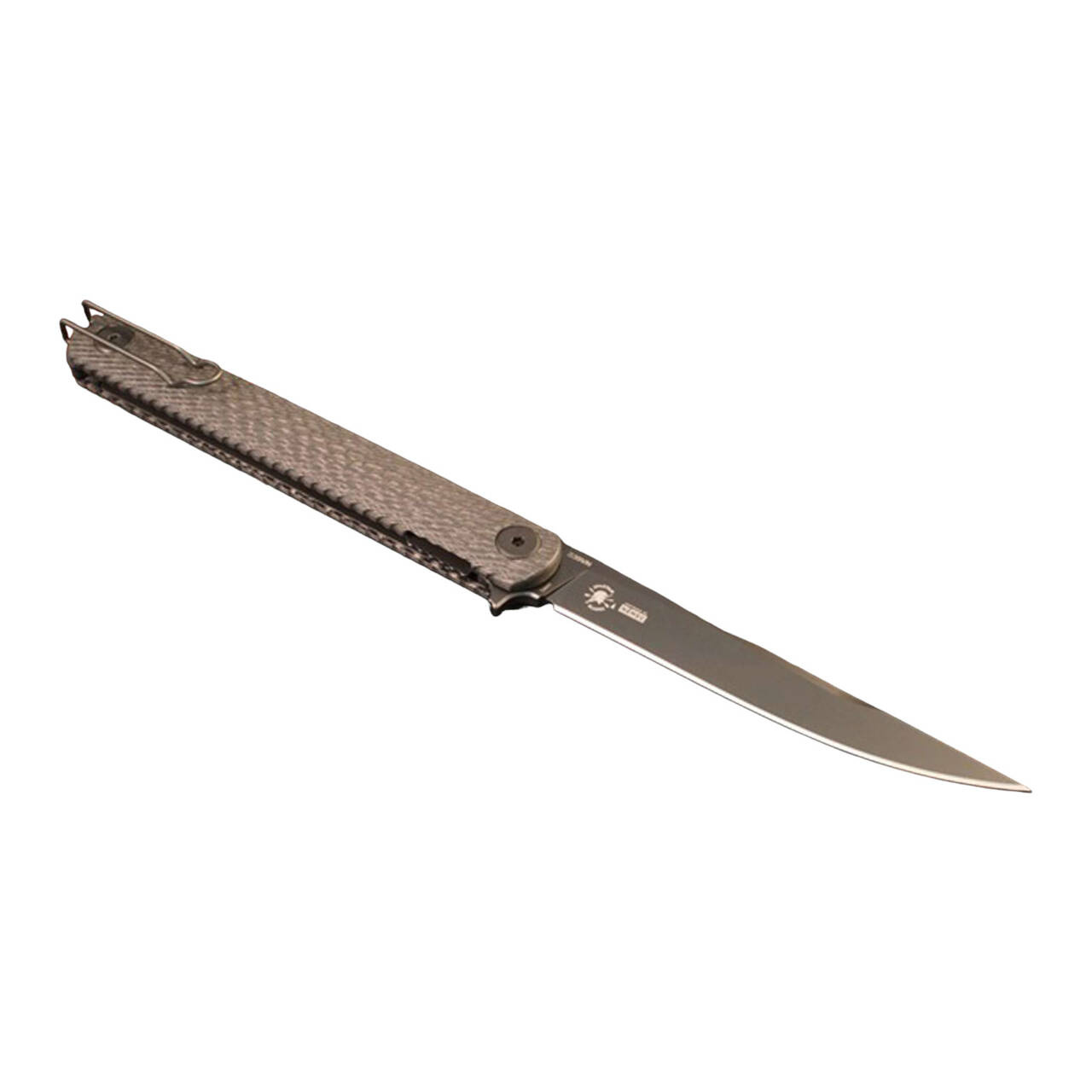 Designed by Ondřej Němec, the Spartan-Nemec Folder masterfully combines style and lightweight functionality. The Czech-born knife designer takes it to the extreme with a wealth of expertise in precision craftsmanship, serving up an EDC masterpiece to discerning knife lovers. Sleek lines make for a discreet and lightweight feel so it's barely noticeable - old-school gentlemanly. The folding knife is made from premium materials and features a ball-bearing blade made from high-quality, powder-metallurgical CPM-S-35VN, which offers outstanding performance for a variety of everyday tasks. The handle, made of high-quality carbon, is durable and emphasizes the aesthetics of the gentleman's knife. The flipper and liner lock for opening and locking the black-coated blade tie in with the unobtrusive concept. With wire clip (tip-up/r) that allows deep carry.