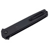 The Boker Plus Kwaiken by Lucas Burnley is one of the most influential designs of the 21st century. With its clear and practical shape, the modern pocket knife has become a true icon. The precise lines and slim design, which nevertheless accommodates the entire blade when closed, are unique. It is the further development of the well-known Burnley Kwaiken Classic, a fixed-blade knife also in the neo-Japanese style. In the Kwaiken Sym, the knife designer from Oregon brings the idea of symmetry and harmony in line with Japanese philosophy. The flipper resembles a parrying element and allows safe, intuitive operation. The linerlock, which locks the dagger blade honed on one side, is made of black-coated 154CM on a ball bearing and is just as reliable. The exclusive claim is underlined by the handle with noble titanium bolsters and handle scales made of G10, which harmoniously give the all-black knife a very special look. The slim design and the exclusive material make the Kwaiken a noble crossover between a gentleman's folder and a tactical knife. It is supplied with a high-quality nylon case for storage. With a removable clip (tip-up/r).