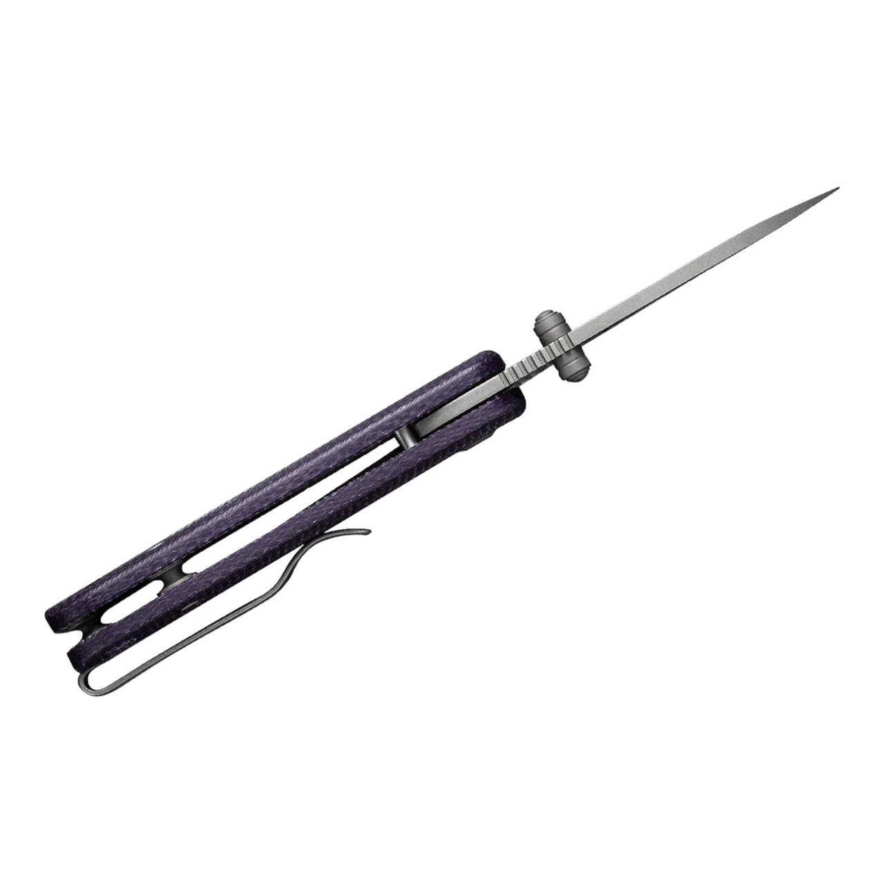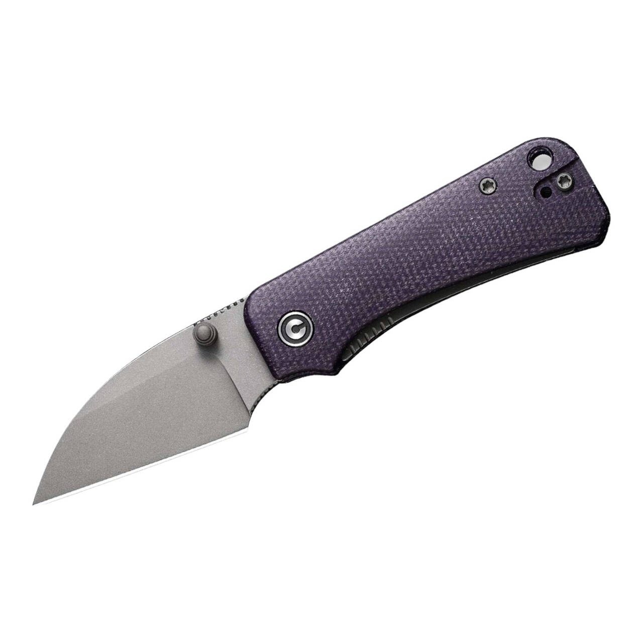 The reliable Baby Banter from CIVIVI is up for any kind of fun. The pocket knife designed by Ben Peterson doesn't go to the cellar for a laugh, but straight to the next outdoor adventure. Its extremely sharp and cutting Wharncliffe blade made of high-strength Nitro-V has only a weary smile for the daily tasks at hand. It is equipped with a non-slip handle made of purple Micarta, a thumb stud and a linerlock. With lanyard loop and convertible clip (tip-up).