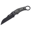 As hot as Fritton fat! The knife designer Ruben Fritton has completely reworked the idea of the Karambit knives, which are particularly well known in Southeast Asia, and presents the fixed Magnum Straight Karambit as a robust knife with tactical DNA. The characteristically curved handle now gives way to a straight design with ergonomic handle scales made of black Micarta. The full tang construction and a powder-coated, black modified sheep foot blade made of 440A ensure maximum stability when cutting up cardboard boxes or pruning small branches. The typical ring at the end of the handle for attaching one's finger can optionally be used as a lanyard hole, making it the ideal complement to the supplied Kydex sheath with a belt clip as an additional carrying option.