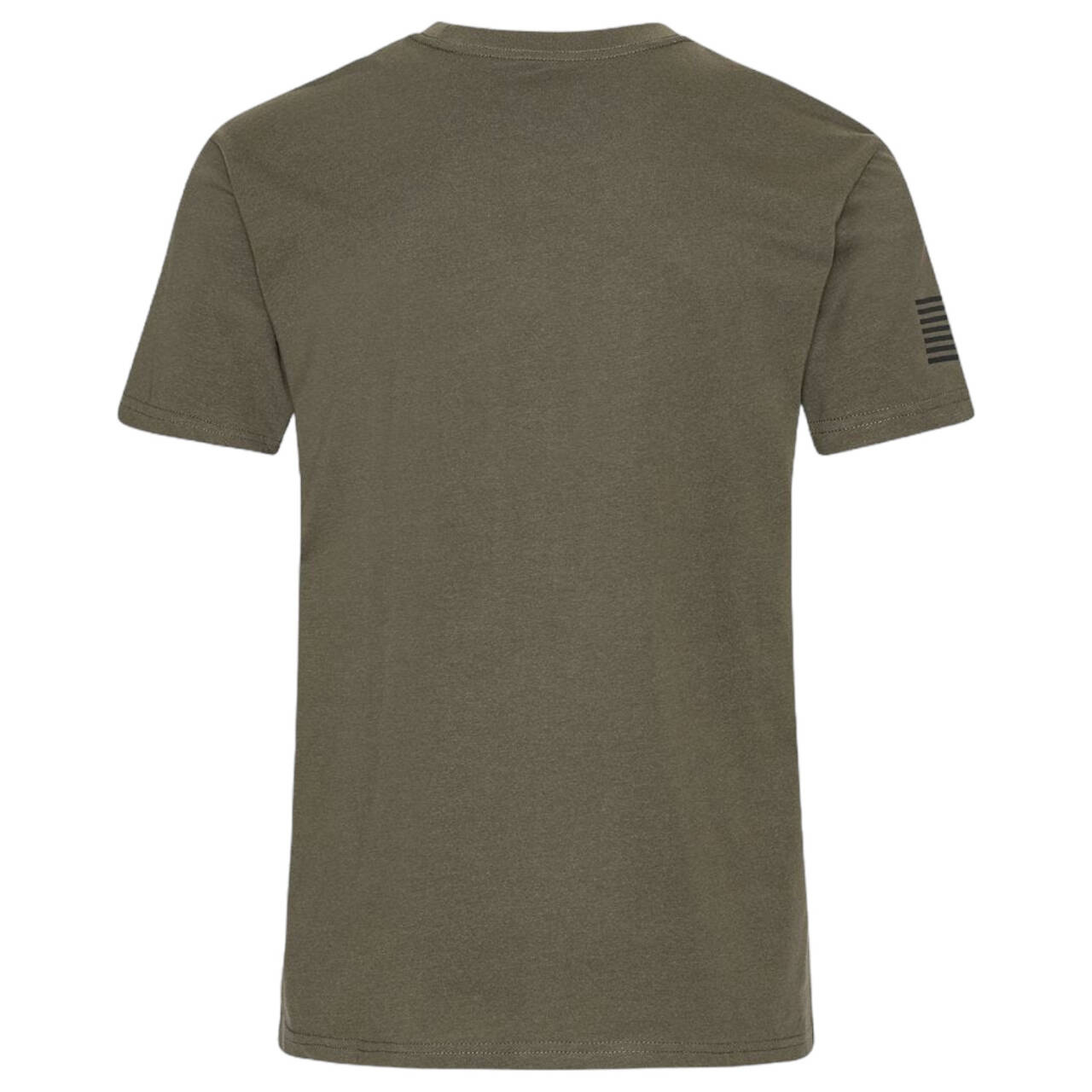 The t-shirt is made from 60% cotton and 40% polyester, which gives you a nice, soft quality with maximized comfort. It's designed with a large contrasting Wiley X logo on the center chest and a WX flag label at the hem of the jersey. Printed on the right sleeve is a US Assault Flag, which means the flag's stars are pointing forward, illustrating the flag's movement, as seen on American uniforms.