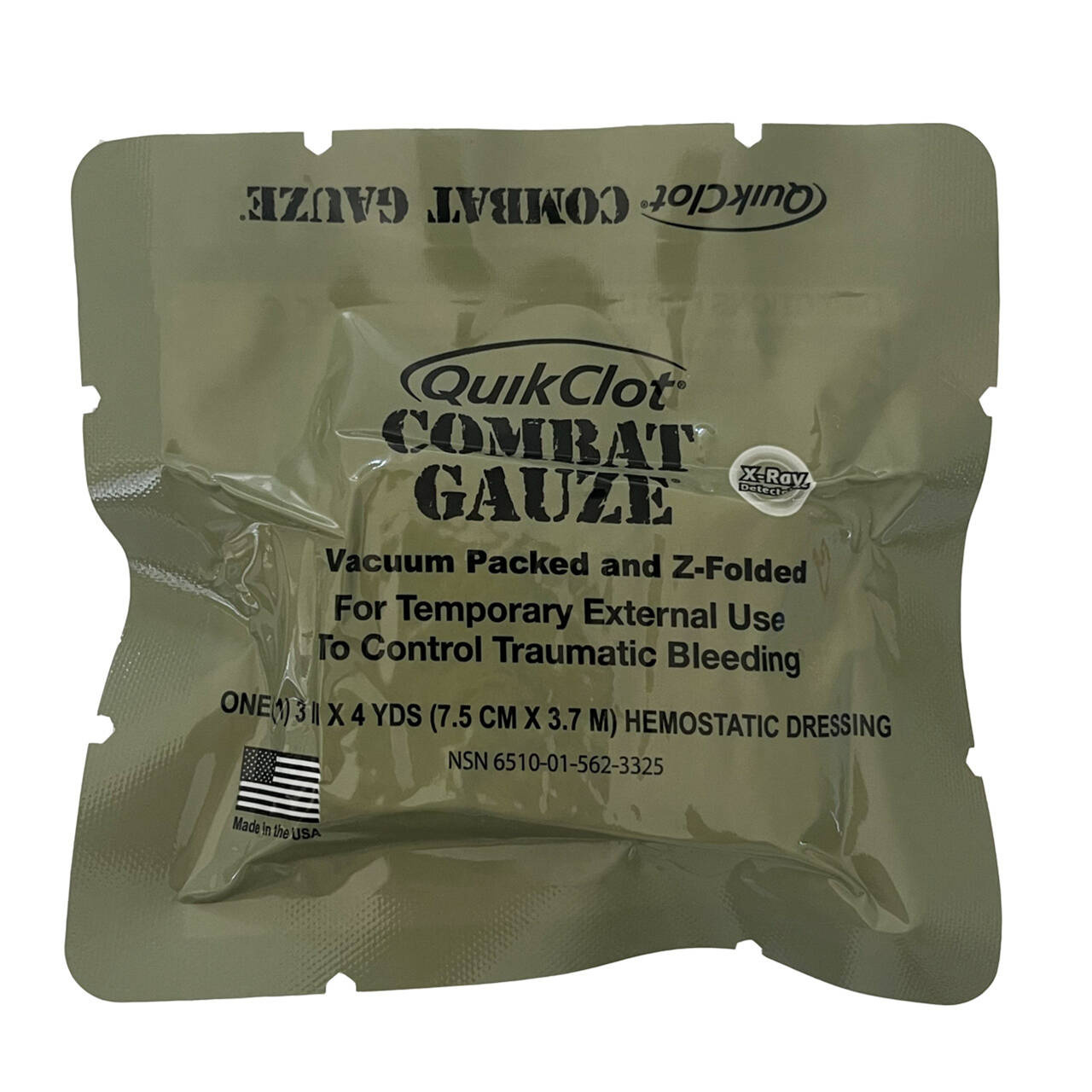 The QuikClot® Combat Gauze® Z-Fold is a soft, white, sterile, non-woven gauze impregnated with kaolin, an inert mineral that contains no animal, human or botanical proteins. QuikClot® Combat Gauze® Z-Fold is an improvement of the original QuikClot® Combat Gauze®. Following feedback received from the U.S. military, Z-Medica has improved the QuikClot® Combat Gauze® product by making it Z-folded, vacuum-packed, and with an X-ray detectable strip. The QuikClot® Combat Gauze® Z-Fold is even easier to apply because the gauze is z-folded, which makes it easier to wrap wounds and eliminates the risk of the roll falling out and becoming contaminated. QuikClot® Combat Gauze® Z-Fold Gauze® Z-Fold's vacuum-packing feature makes it much more compact, saving space on the body.