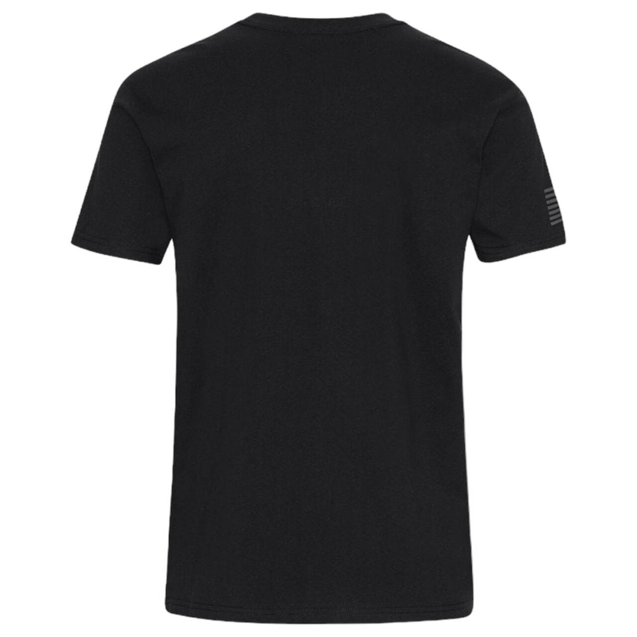 The T-shirt is made from 60% cotton and 40% polyester, which gives you a nice, soft quality with maximized comfort. It's designed with a large, vertical, contrasting Wiley X logo on the left front left side of the t-shirt and a WX flag label at the hem of the t-shirt. On the right sleeve, the design features a print of a U.S. Assault Flag, which means the stars of the flag are pointing forward, illustrating the movement of the flag, as seen on American uniforms.