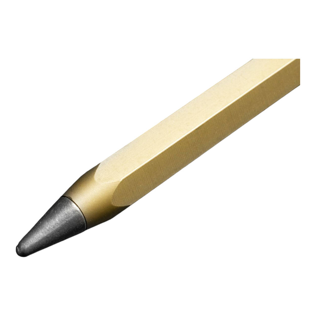 In this particularly classy version, the innovative Boker Plus Redox Pen is supplied with a brass handle body on which a unique patina forms over time. It is based on a millennia-old technique that was already known in ancient Rome and was even used by Leonardo da Vinci and Albrecht Dürer for their famous drawings. The modern pen does not need a refill and works completely without graphite abrasion or ink. Instead, the Redox Pen takes advantage of the rapid oxidation that occurs when the Ethergraph tip comes into contact with the paper. This means that the pen does not wear out, does not leave any unwanted marks on hands or clothing and can be used without any problems even under the most adverse conditions. The lines look like they were drawn with a pencil, but cannot be erased or smudged. The high-quality tip is made by the Italian writing utensil manufacturer Napkin. The Redox Pen looks like a classic pencil and fits comfortably in the hand. Supplied with a practical clip.