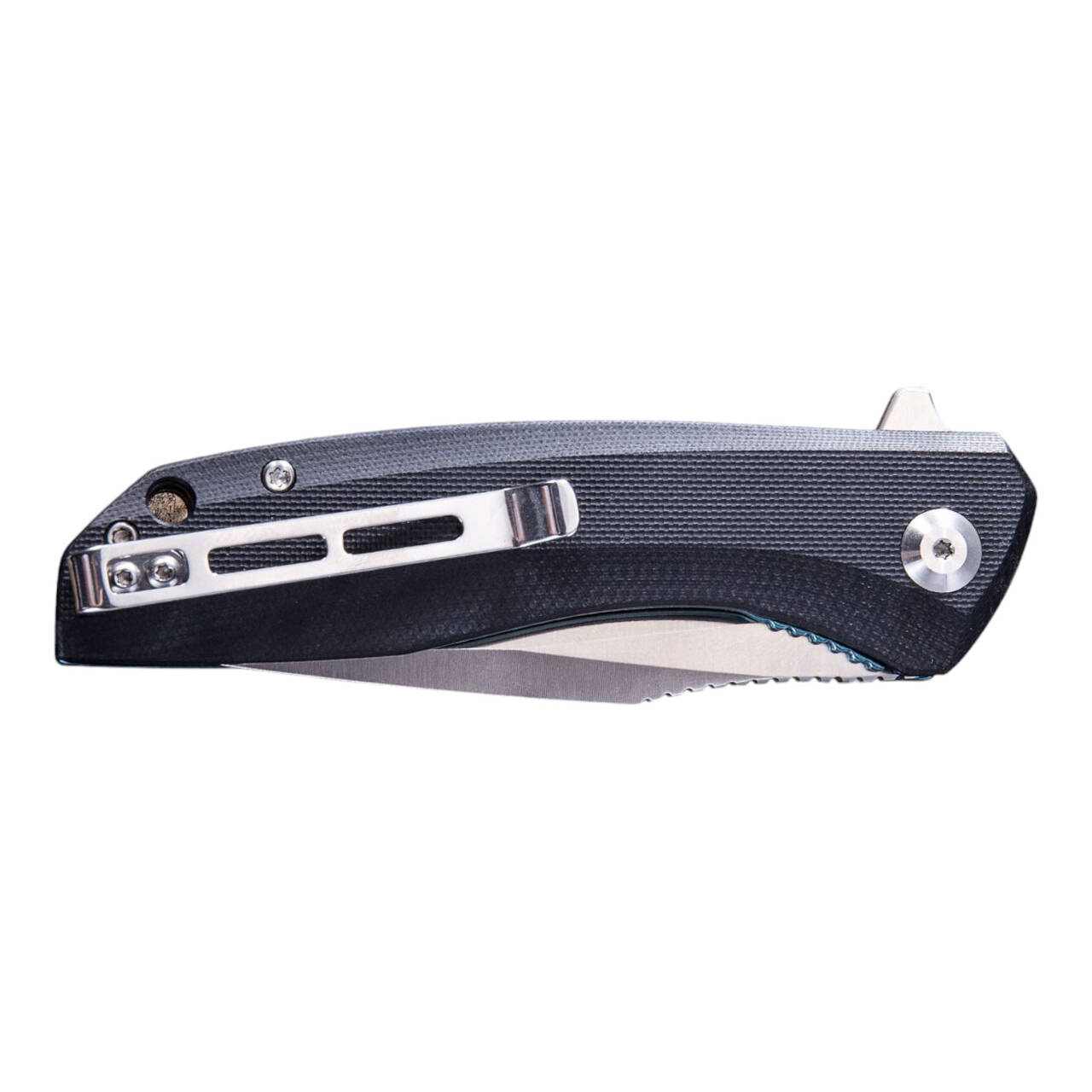 The CIVIVI Backlash is equipped with a hollow ground drop-point blade made of 9Cr18M0V stainless steel, which can be opened by flipper. The handle consists of milled G10 and is equipped with a convertible clip (tip-up/l-r).