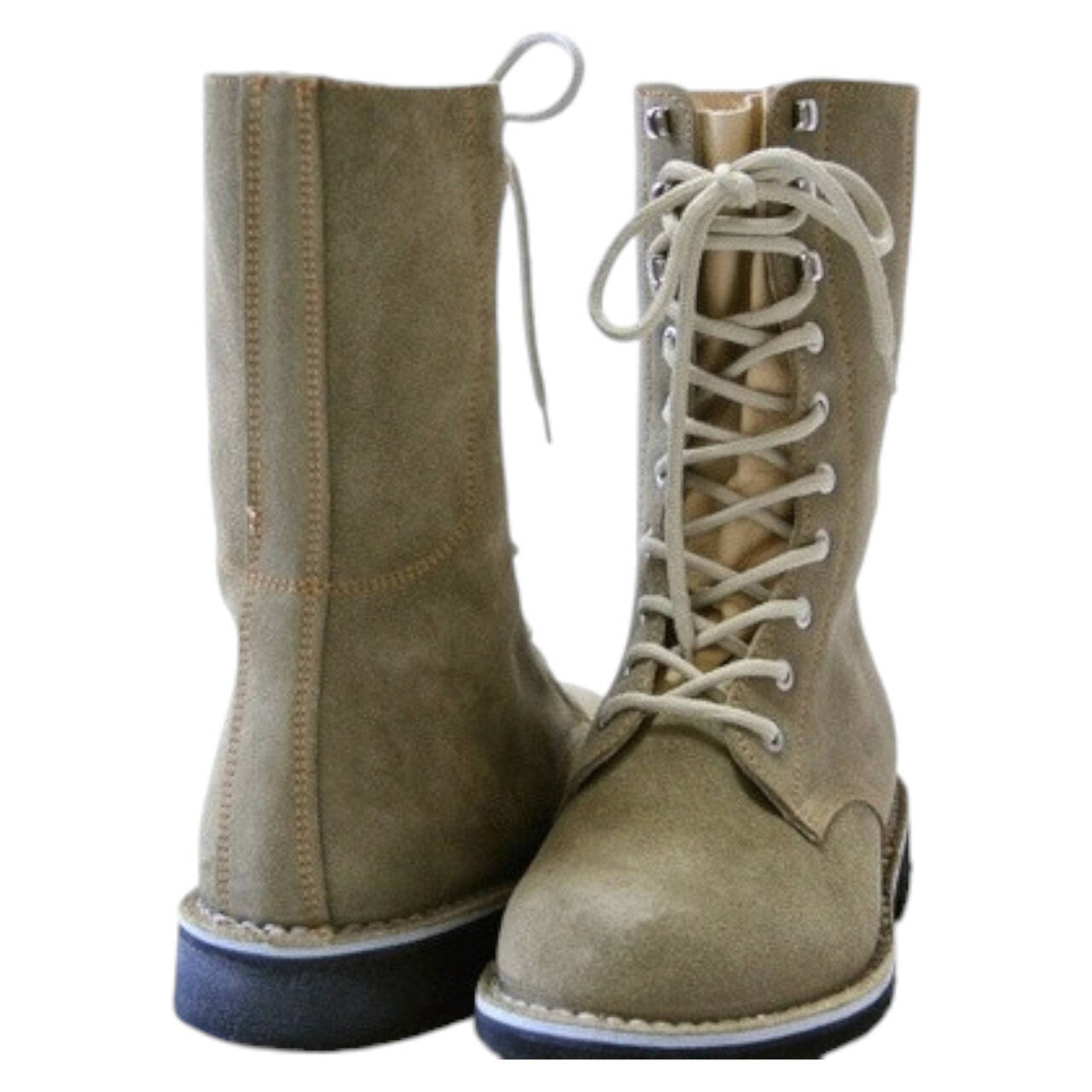 LEATHER BOOTS WITH RUBBER SOLE - MILITARY SURPLUS ITALIAN ARMY - BEIGE - LIKE NEW