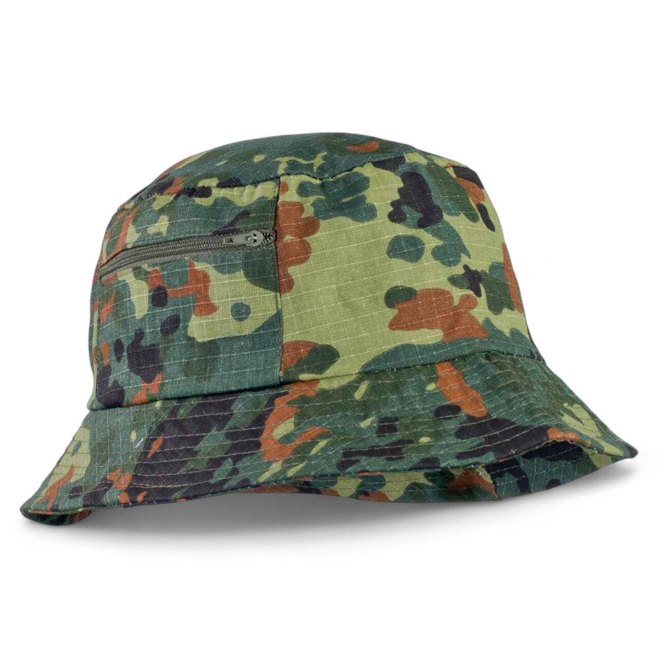 - Slouch slouch hat with narrow stitched brim, ventilation holes and small outside zippered pocket on the side of the hat.