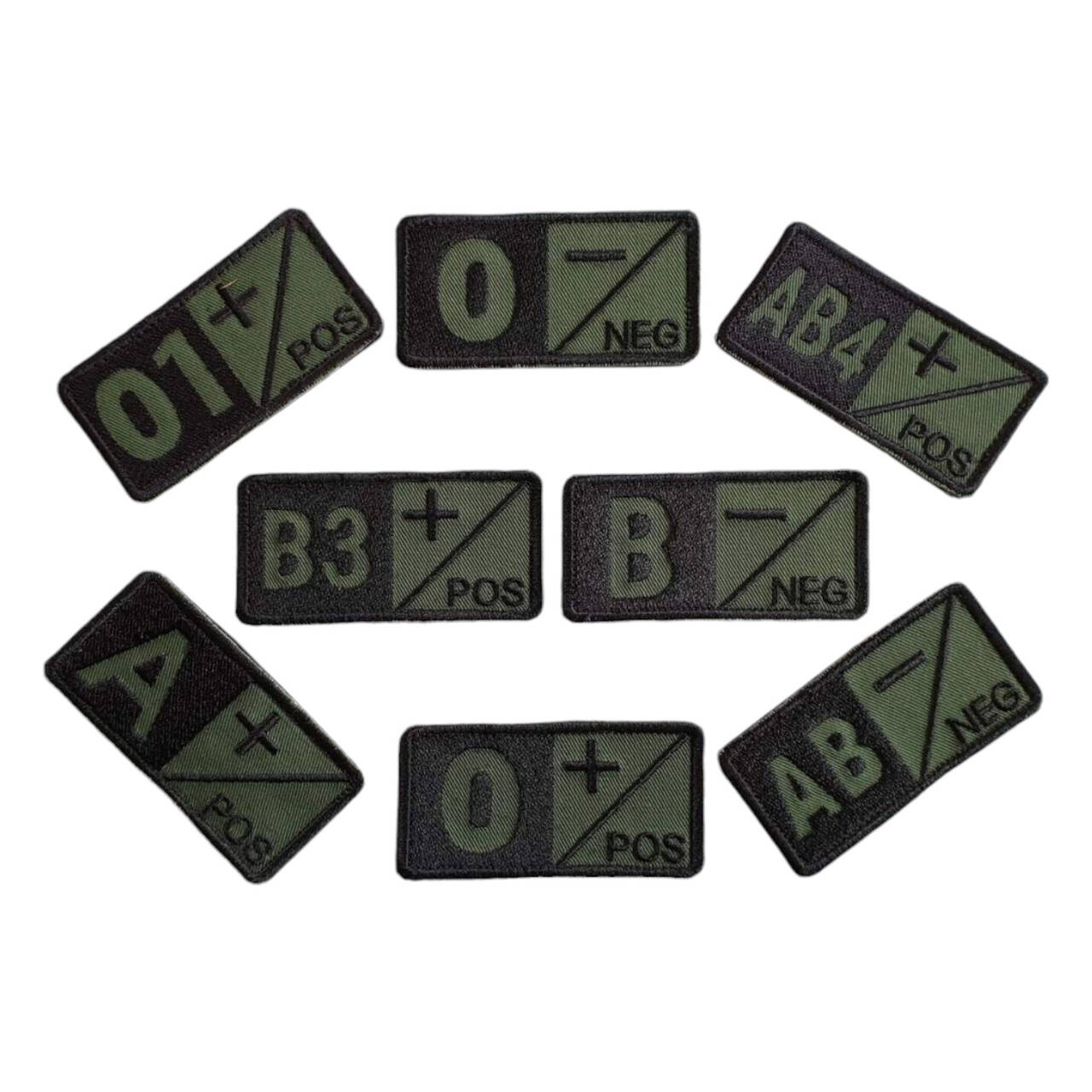 • BLOOD GROUP badge B- embroidered on khaki backing with black thread - hook and loop application