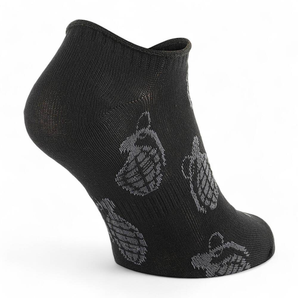 Made from lightweight, breathable fabric: 85% cotton, 10% polyester, 5% elastane. This textile composition ensures optimal thermoregulation, as a result of which the socks do not perspire. They have a shortened design with ergonomically placed pressure points, which ensure an optimal fit on the foot and are almost invisible in shoes. The garnet pattern gives the socks an original look and the anatomical shape ensures a comfortable fit in the shoe.