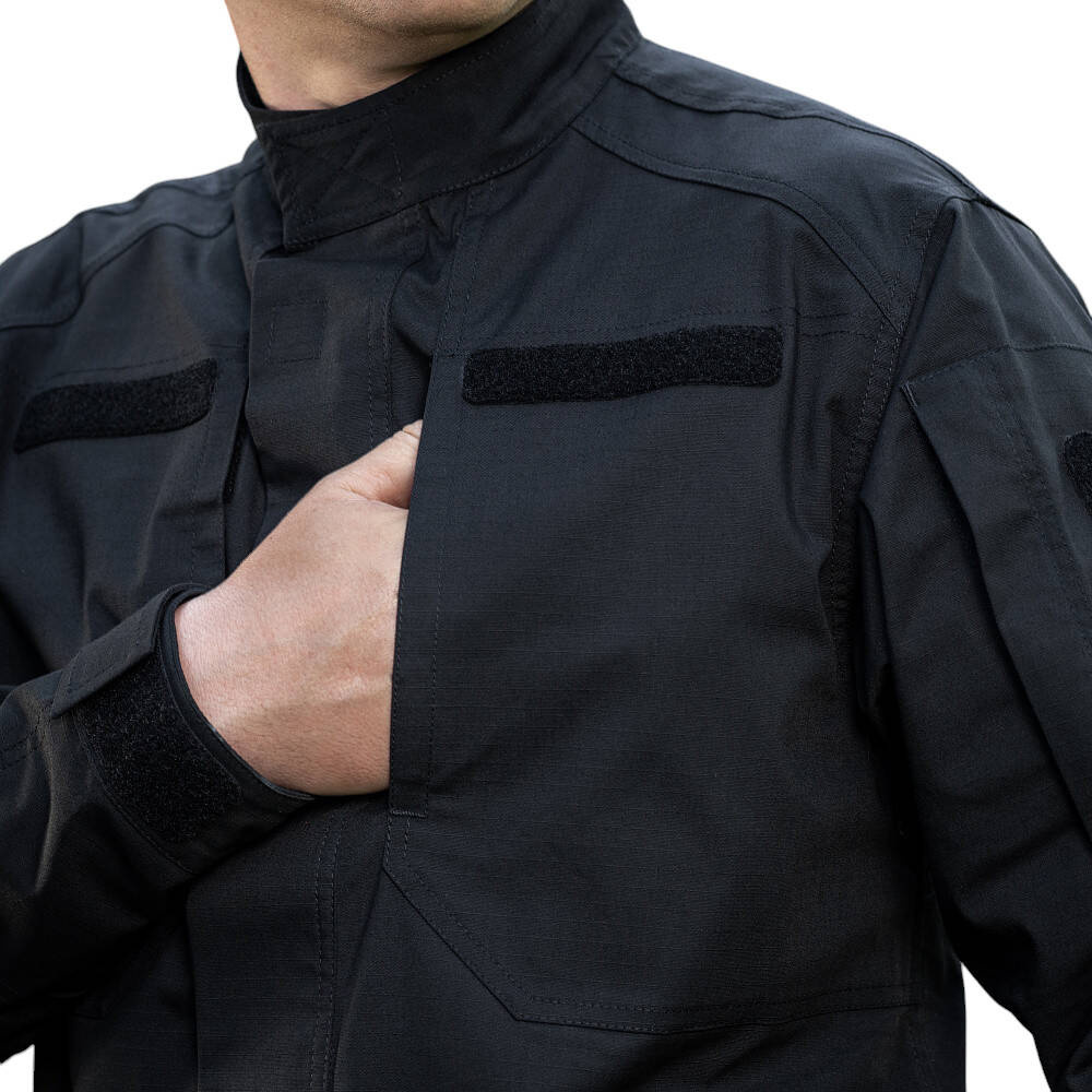 The M-Tac Patrol Flex jacket has a comfortable, slightly arched cut. It features a high collar, Velcro zipper, and a central closure system in the form of a removable plastic "tractor" zipper that covers the Velcro strips. On the chest are two concealed Velcro pockets with vertical entries for easy access to the contents, as well as horizontal Velcro panels for attaching name badges and medical data patches. Under the arm are embroidered vents for improved ventilation. On the sleeves - a patch pocket with vertical zippered entry and cartoons colored Velcro panel with compartments for attaching instruments or similar equipment. On the back, there is a reinforced yoke at the upper back, with a Velcro panel for an IR marker under the collar, and along the contour of the cuff are expanding pleats, which help to maintain freedom of movement of the arms, even when wearing a bulletproof vest or other protective gear over the jacket. The sleeves are equipped with a Velcro patch pocket for installing soft protection. The cuffs are adjustable with a Velcro flap.