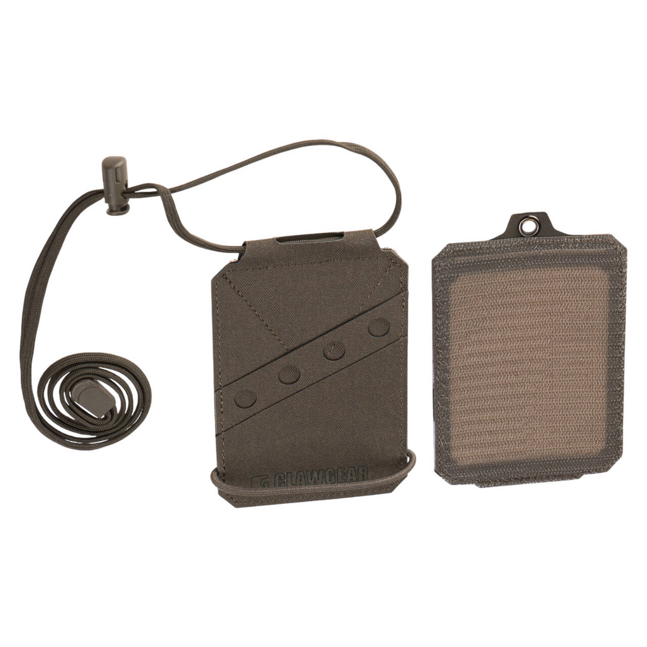 The Multi-Purpose ID Holder is an ID card sleeve that can be attached to any Velcro surface or an included neck strap adapter.