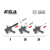 The replica uses the ESA™ quick spring change system. This allows for rapid and efficient power adjustment of the replica to match the expected conditions on the playing field, without the need to access a workshop or specialized tools—simply unscrew the stock guide to reveal access to the spring change without needing to remove or disassemble the gearbox.