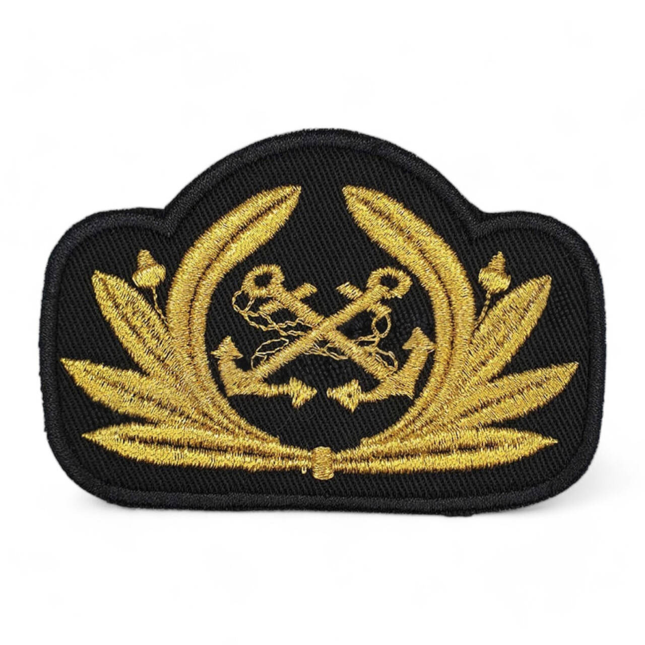 Emblema de coifura | Emblema pentru cascheta ANR brodata cu fir metalic auriu pe suport din tercot termocolat de culoare neagra.
