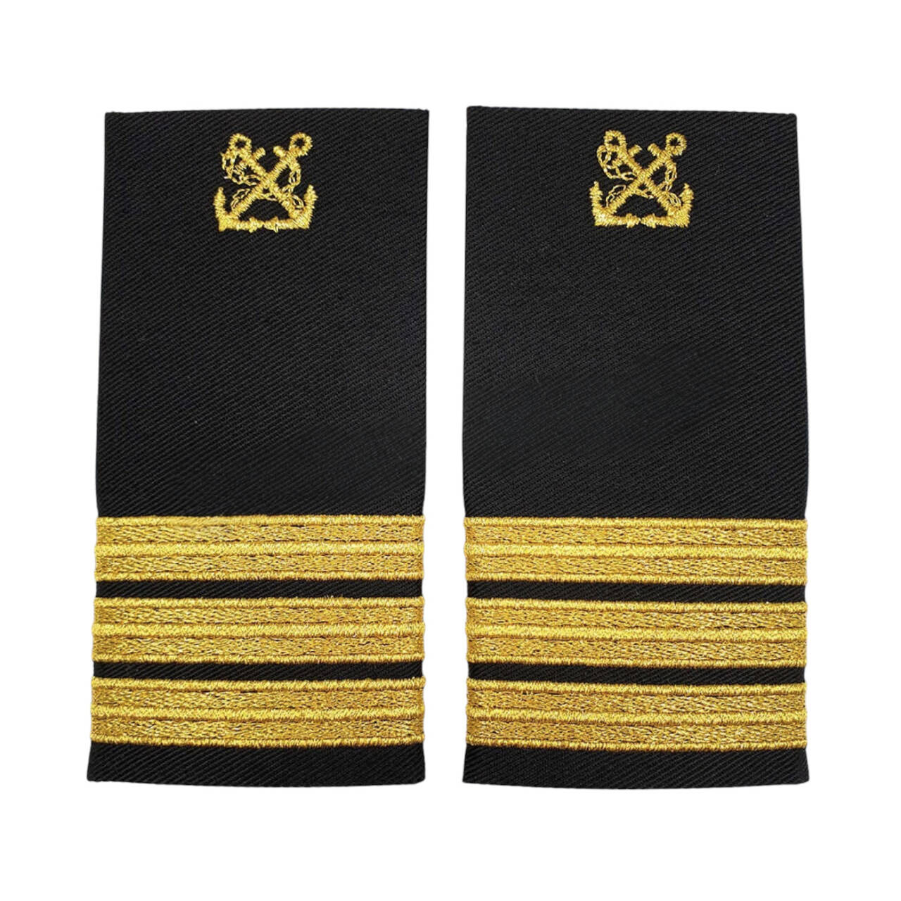 Grade Capitan II de port ANR brodate cu fir metalic auriu pe un suport confectionat din tesatura cu compozitia 65/35% bumbac/poliester de culoare neagra cu intaritura termocolata. Sunt potrivite pentru functiile de executie cu studii superioare din capitanii zonale si inspectorate tehnice.