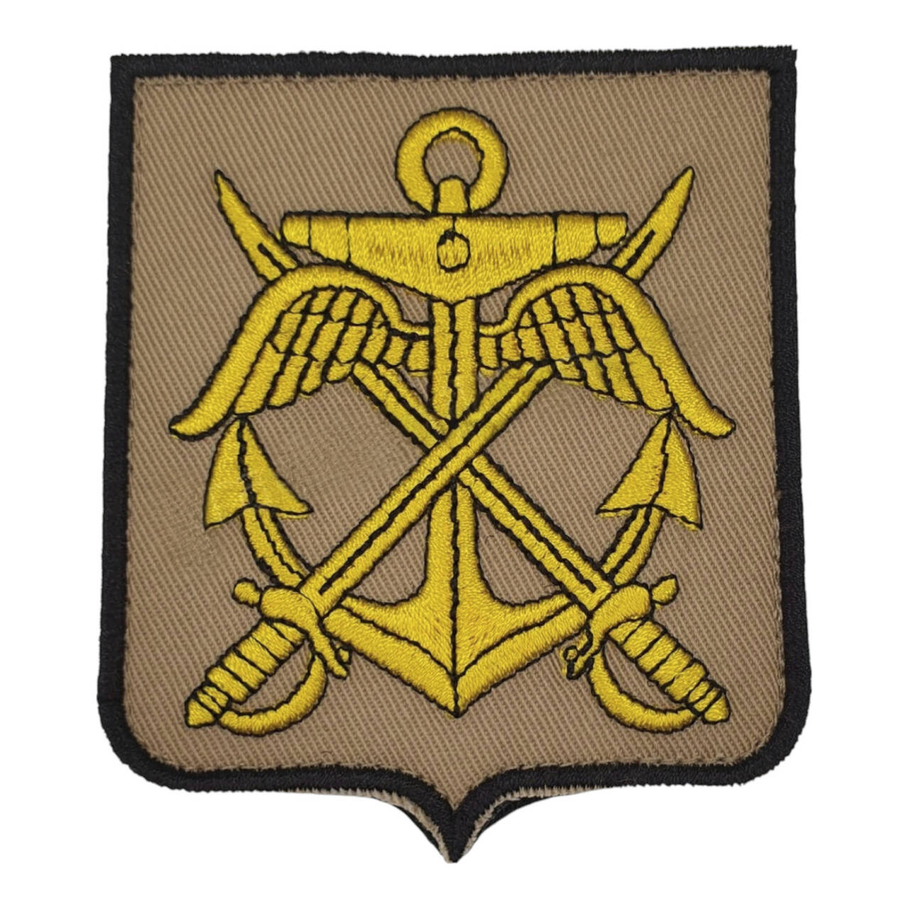 Emblema pentru Statul Major al Apararii, este brodata cu fir de Madeira Polyneon 100% poliester. Poate fi pe suport combat (camuflaj) fortele terestre, kaki, bej sau varianta de oras brodata pe toata suprafata.
