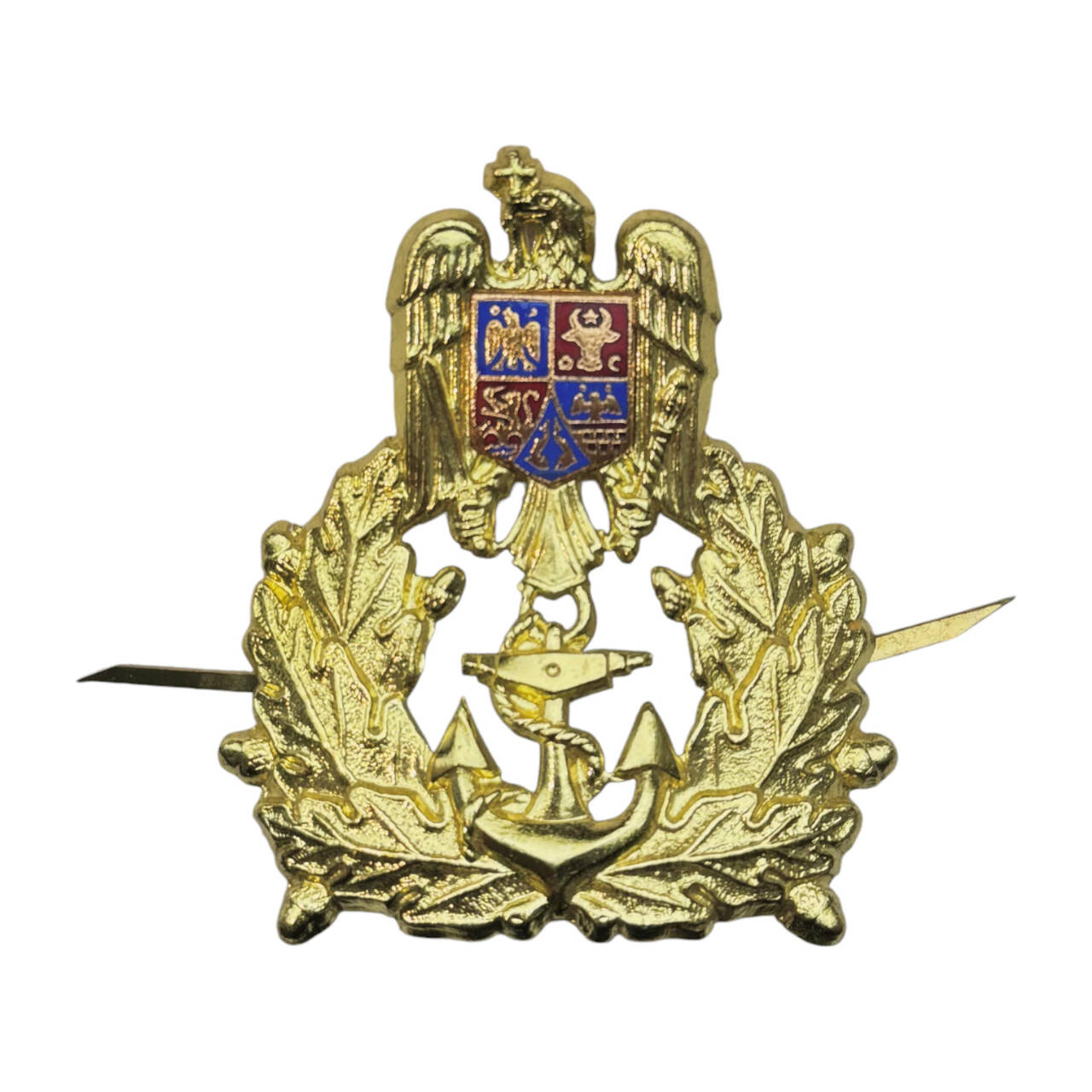 CAP BADGE - MARINE OFFICER - 1598 - ROMANIAN ARMY MILITARY SURPLUS - GOLD - IN GOOD CONDITION