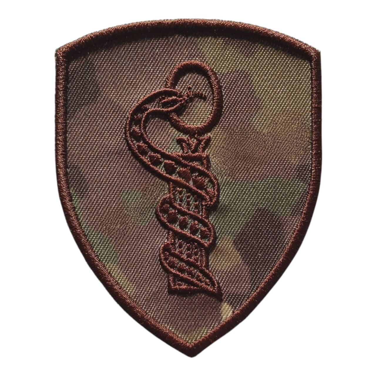 • EMBLEMA SEMN DE ARMA MANECA SCUT - MEDICAL  - BRODATA PE SUPORT CAMUFLAJ COMBAT FORTE TERESTRE CU FIR MARO