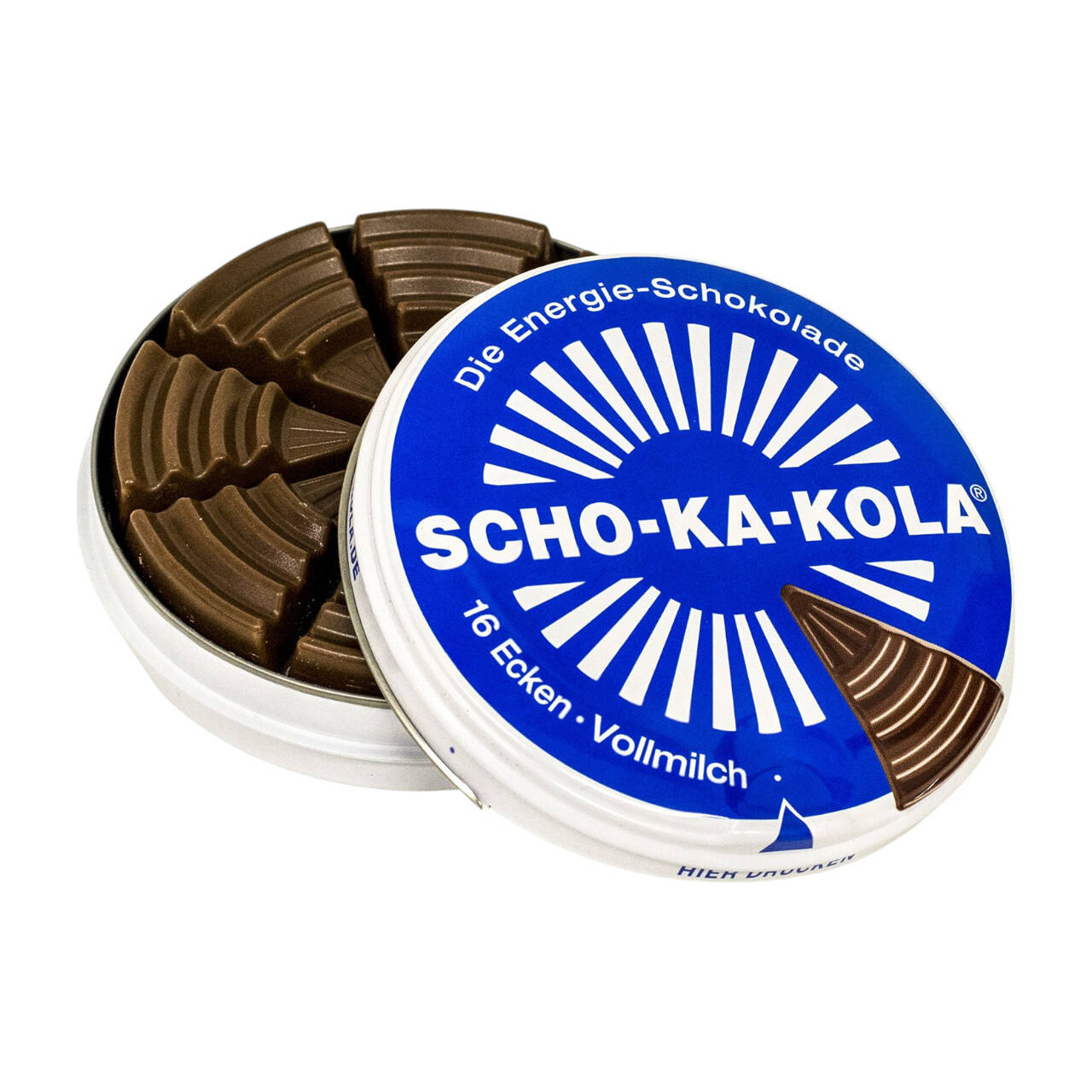 SCHO-KA-KOLA has been delighting for generations in the striking round box with the eye-catching spoke design. It contains 16 tenderly melting SCHO-KA-KOLA SCHO-KA-KOLA corners, available in classic black or whole milk flavored. Whether tart or sweet: both varieties are characterized by the unique recipe with natural caffeine from cocoa, kola nut and coffee. The kola nut makes SCHO-KA-KOLA a special caffeine chocolate. The kola nut is the seed of the kola tree, which is mainly found in West and Central Africa and contains significantly more caffeine than conventional coffee.