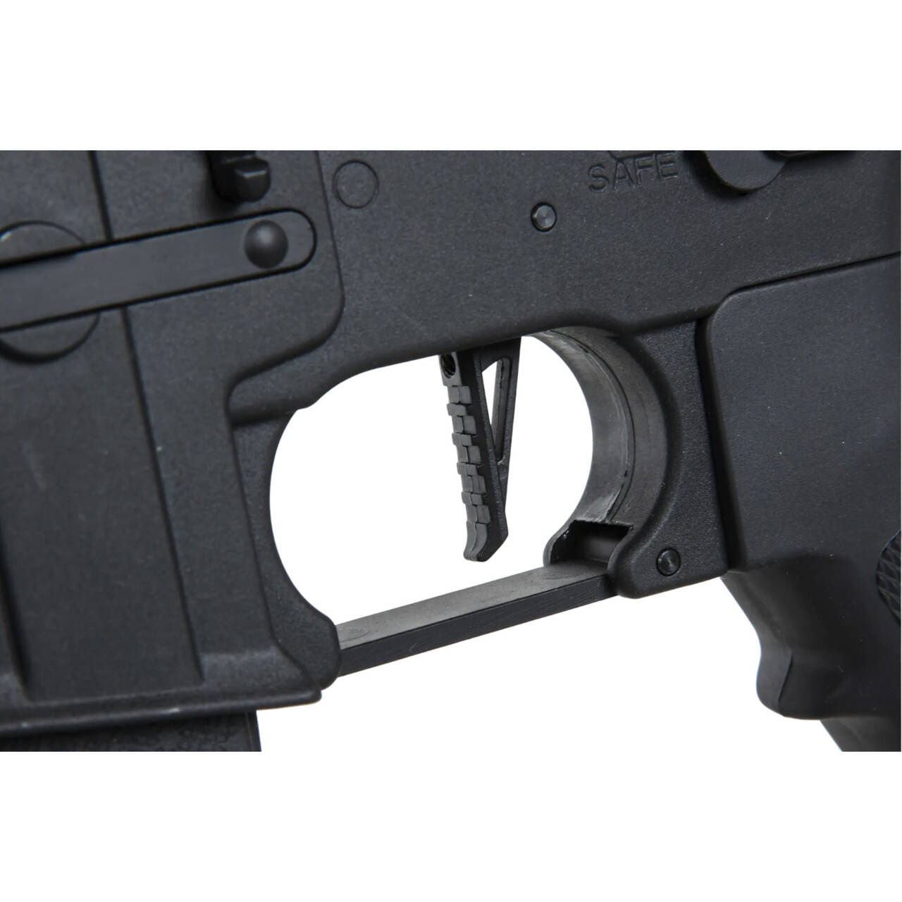 The replica is equipped with a front-mounted RRA Lightweight Lightweight Free Float Rail to the Rock River Arms®-licensed M-LOK standard, and the barrel is finished with a standard 14mm CCW thread mounted unloading device. On the rear of the replica are folding sighting tools.