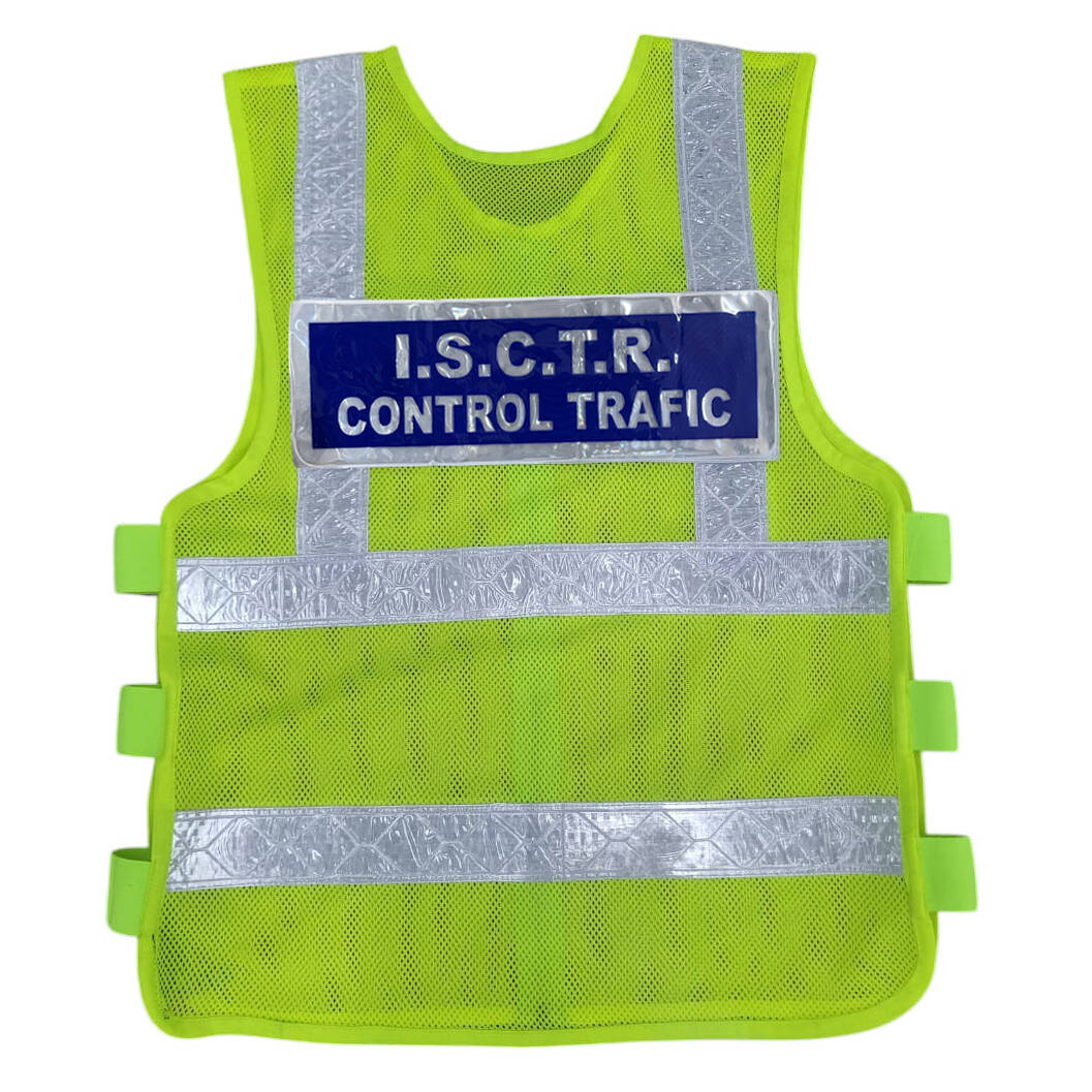 - Provided with microprismatic retroreflective stripes and "ISCTR - CONTROL TRAFIC" inscribed plate, covered with PVC backed film.