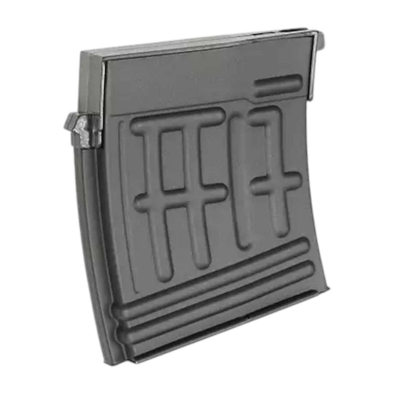 This magazine is the ideal partner for your KOER SVD bolt-action and AGM SVD spring-action SVD bolt-action sniper rifle, made with a sturdy steel case and polymer interior. With a generous capacity of 33 rounds, you can stay in the thick of the fight for extended periods. Just so you know, this magazine is not compatible with AEG SVD rifles.