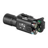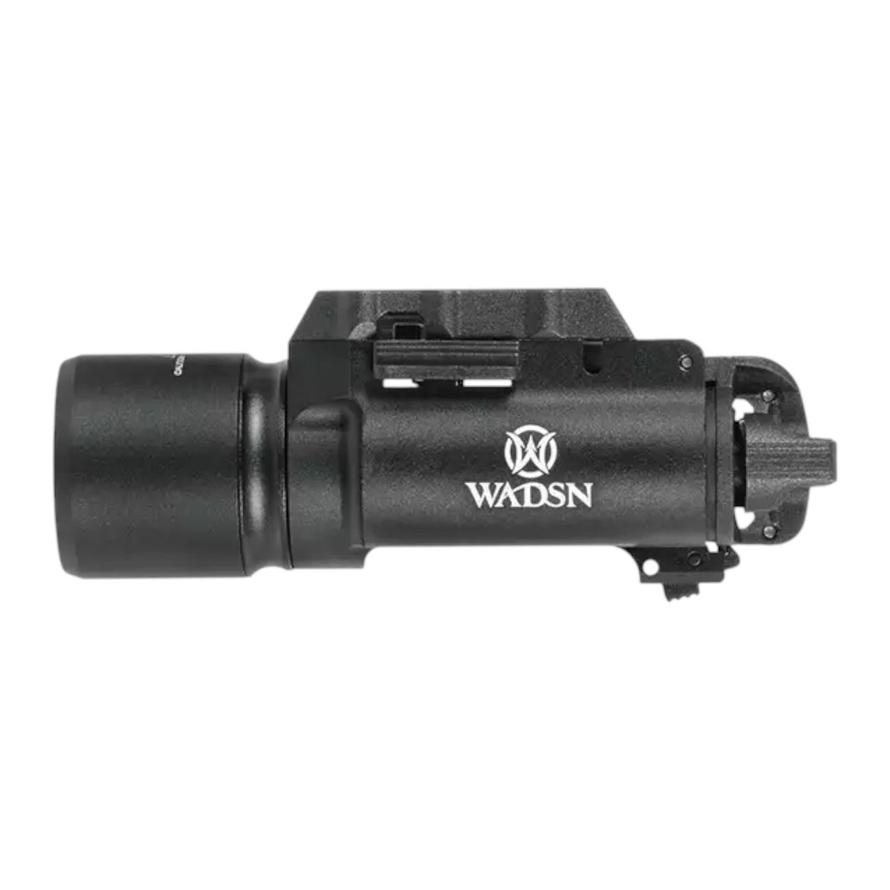 A high-quality flashlight from WADSN designed for pistols. It is made of aluminum which makes it very lightweight. It is powered by two CR123 batteries and is mounted on a Picatinny rail (5mm) and a pistol rail (3mm). The flashlight is easy to use, and the light switch is located in such a position that using it is intuitive and quick. Thanks to its small size, it does not interfere with the handling of the weapon, and its bright light - 400 lumens, is irreplaceable in many situations. The light source is CREE-XPG-R5.