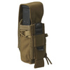 The pistol magazine pouch is designed to hold a magazine or similar-sized items. The pouch closes with a hook, loop flap, and non-slip grip for easy opening. The removable flap and elastic drawstring allow versatile use in an open configuration. A reinforced front panel facilitates easy magazine insertion and removal. The pouch attaches using a MOLLE/PALS compatible modular system.