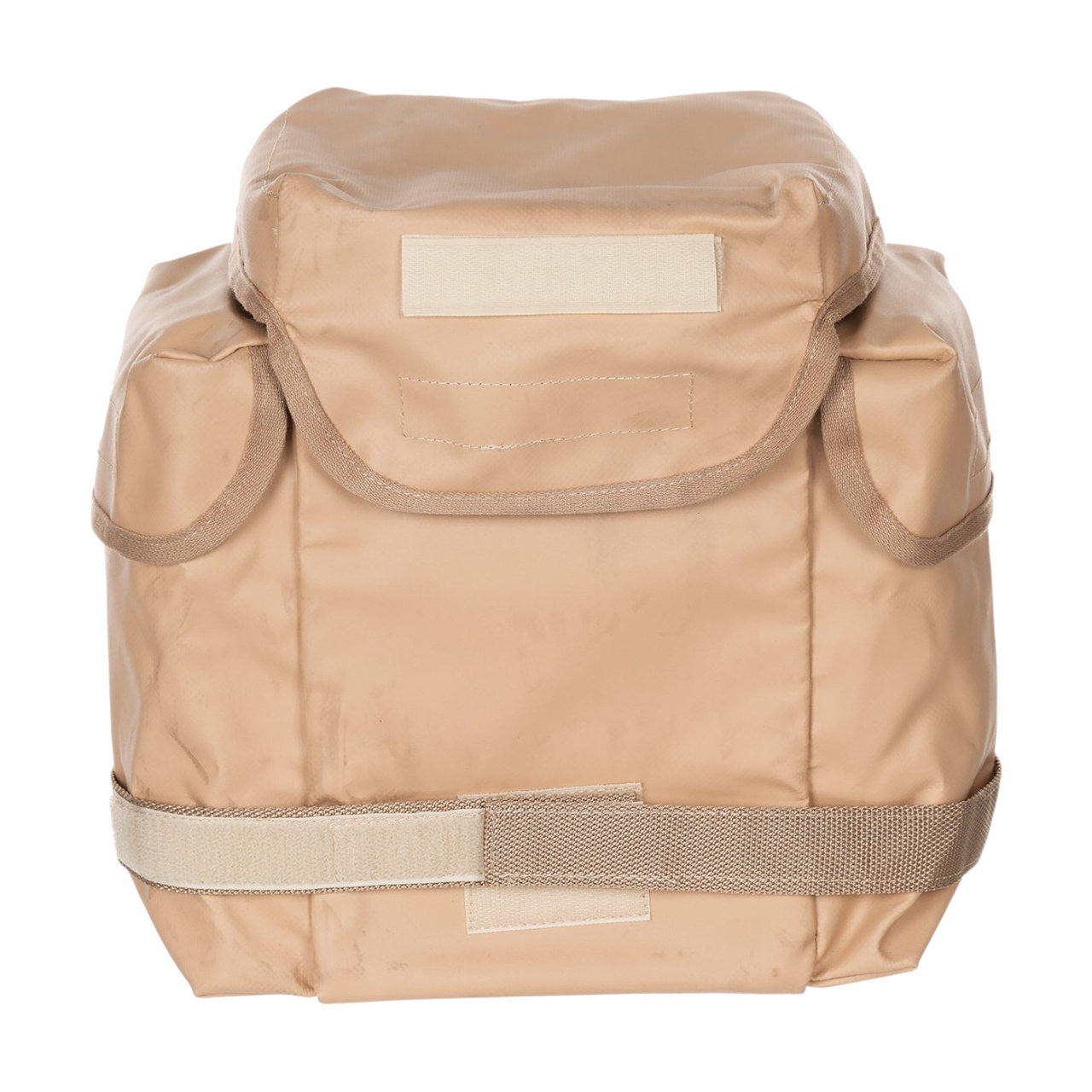 - The bag has two side pockets and two nylon straps with MOLLE compatible hooks.